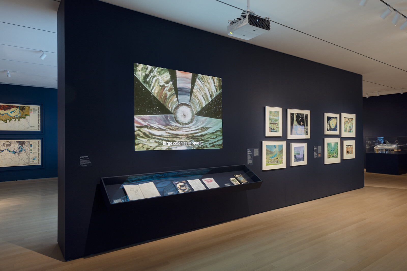 This is not a coincidence. As this exhibition makes clear, saving the environment—or building architecture in harmony with it—is no longer a technological problem so much as a political one. Reflecting this, “Emerging Ecologies” is as much about science fiction and worldbuilding as it is about real solutions in landscaping or environmental data systems. It includes works such as Don Davis’s NASA paintings of life in space colonies, or the 1972 movie Silent Running, which uses the St. Louis Climatron as a setting for a futuristic eco-foible that predicted the social collapse of test subjects living in Biosphere 2 two decades later.