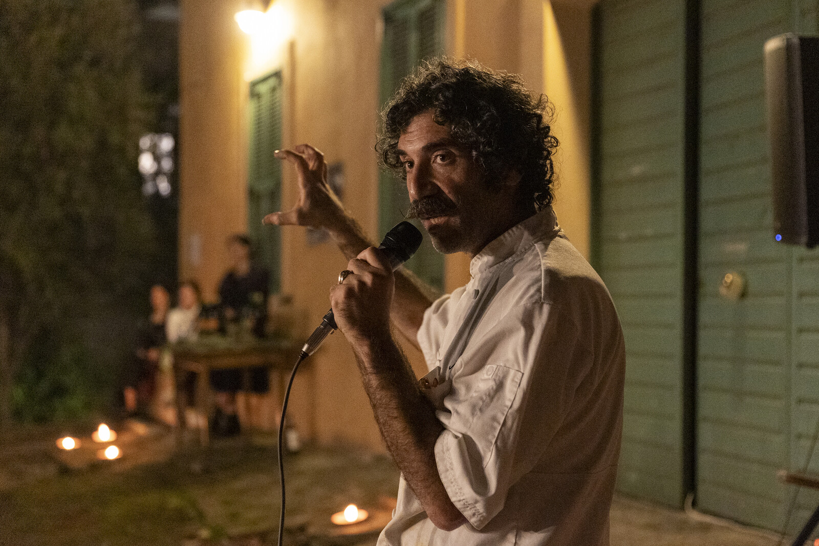 Throughout the evening people were invited by Jacir to share poetry and reminiscences drawn from her extensive archive of materials and interviews gathered over the years. Among them was journalist Samir Al-Qaryouti, one of a group of young Palestinians, along with Zuaiter, studying Italian in Perugia in the late 1960s. He talked about the difficulties of integrating as an Arab, a term that was seen as synonymous with terrorist. “The Italians told us and the other Arab students to be attentive to the possibility of provocations,” he recalled. “We had to have relationships with whomever supported our cause, except the fascists—the fascists, no!” It was the start of Italy’s Anni di Piombo (years of lead), two decades characterized by violence between extremist far right and left groups including the Red Brigades, with whom the PLO was allegedly aligned. Al-Qaryouti said that the situation for Palestinians living abroad has not improved and that Israel’s “objective is to destroy the Palestinian culture.” He continued: “This is not a war; it’s the extermination of a population. … They are committing an enormous crime against humanity, with the objective of demolishing all of the Palestinian refugee camps. Today Palestine, tomorrow Jordan, the day after Lebanon.”