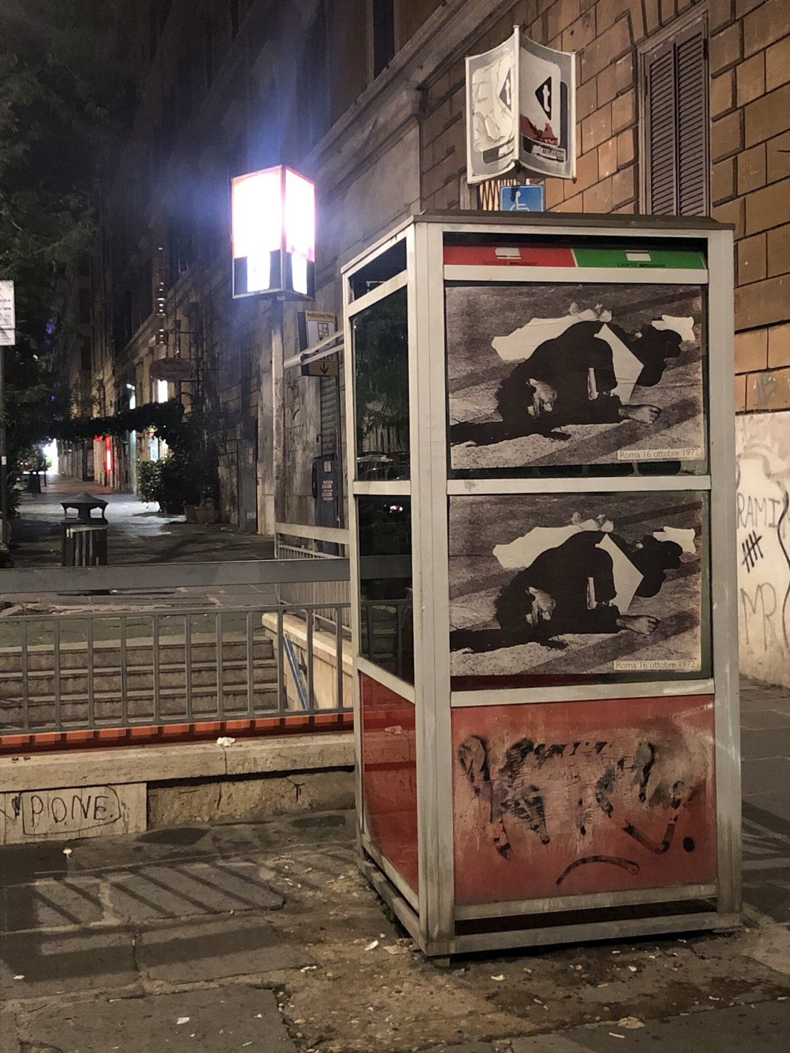 A large black-and-white photograph of 38-year-old Zuaiter’s body with blood pooling around his head, published in the left-wing newspaper Paese Sera on the morning after his assassination, was affixed to the exterior of the villa. On the previous weekend many others were surreptitiously pasted on walls around the city, often in multiples, like exclamation marks or echoes of the brutality of history. “I met Wael Zuaiter through his body stretched out on the asphalt with his head hanging down, a violent image like those we see every day during this year of genocide,” curator Sara Alberani said. “With comrades and friends, we mapped the city of Rome according to sites of resistance … to allow his body to speak.” The diners included curators, artists, and activists such as the collective Mabasta! (But enough!), which organizes performances and talks in support of Palestine, alongside Jacir’s students from the Nuova Accademia di Belle Arti and residents of the American Academy in Rome, a supporter of the event. As we listened and ate, the subject of the image became more fully human, and the distant event more immediate.