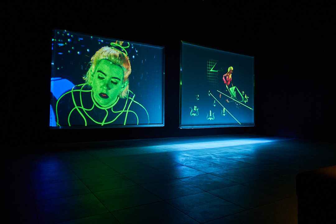Simnett’s work at FACT is shown alongside Ericka Beckman’s 1980s and ’90s films, which draw on video games and fairy tales. What comes across powerfully from both artists’ work is the fact that simply contaminating one narrative with another can be disturbing. Different languages and registers could be intimate to one person, but still clang when put next to one another in public. It is strange to hear a textbook definition of mastitis given in response to a seductive compliment, or to see the fairy-tale princess in the kind of pixelated landscape where she might bump into a Mario Brother. The experience of this dissonance made me feel that overlooking is a more willful process than it seems. I thought of W. G. Sebald, writing about the fake grass that surrounds the cuts of meat in a butcher’s shop—plastic meadows designed to make the customer feel that her steak is enjoying the refrigerator, using an image which seems almost deliberately inept. The fake grass, for Sebald, shows “how strongly we desire absolution and how cheap we have always bought it.”1 Like Simnett’s work in its emphatic drawing-together of the wrong contexts, the spectacle is both humorous and sad—painfully funny—which is one way to redefine hysteria.