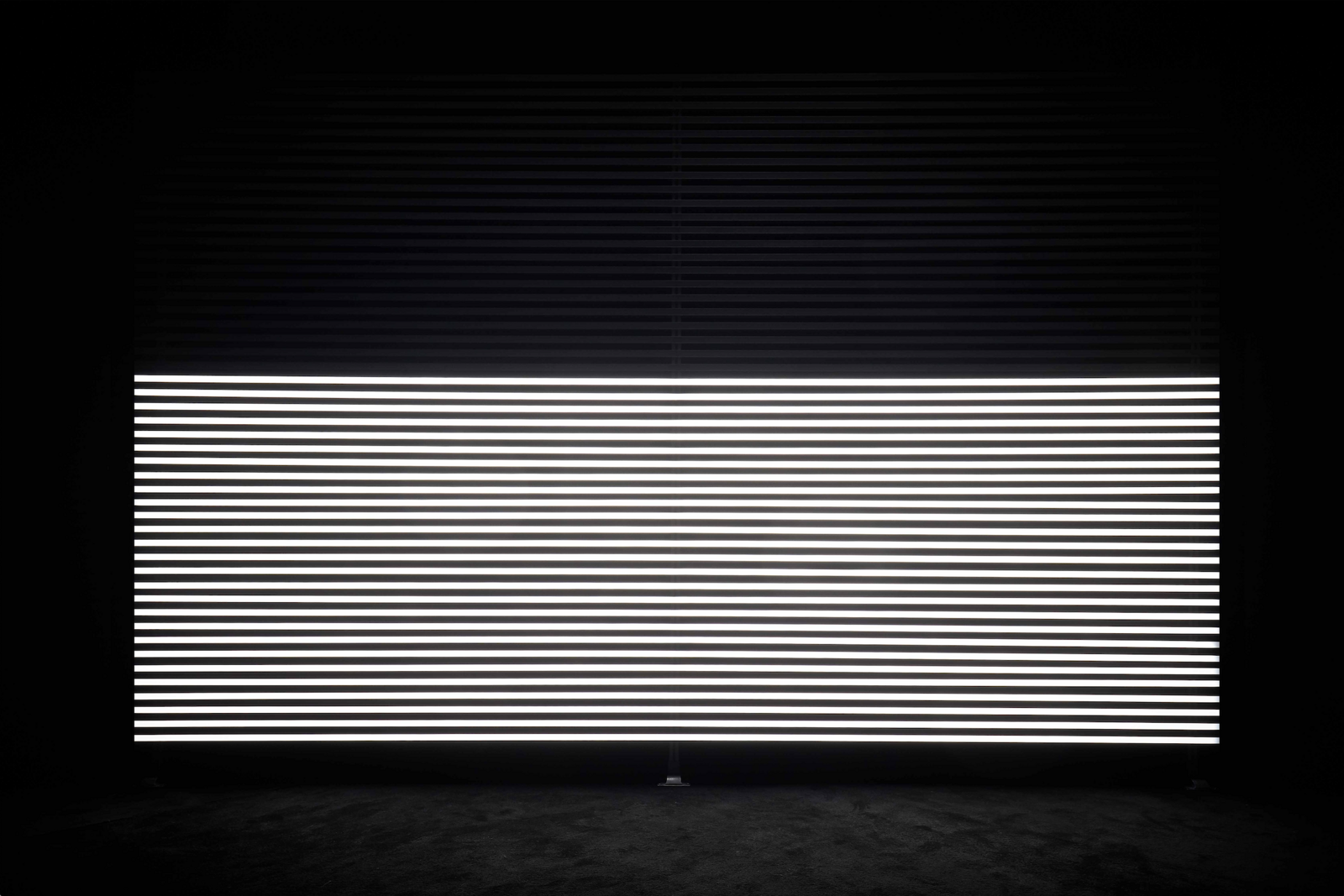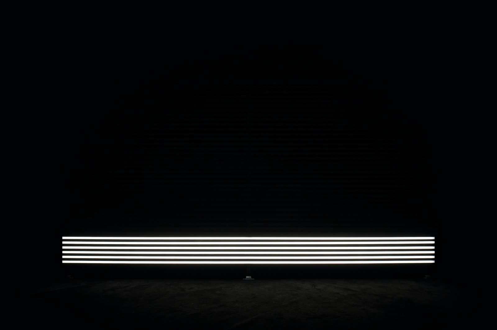 Simnett’s videos are notoriously visceral. The Udder shows the dissection of a cow’s teat; Blood gives a keyhole-view of a brutal operation, and has two personified nose-bones gnawing on a septum, complete with gristly slurping sounds. But Simnett’s third work in the exhibition challenges in a different way. Faint with Light (2016) is a room with a large panel of white striplights which flash, irregularly, in correspondence with a reverberating soundtrack of the artist hyperventilating violently until she passes out. It’s physically uncomfortable in there. The show asks how far your body is willing to go, whether it’s because Blood makes you feel squeamish, or because Faint with Light’s audio literally makes your innards vibrate. It is a strange experience to stand in the small room for a few minutes, gritting your teeth and screwing up your eyes against the glare. I wondered what I was doing. Why would a person choose to stand in unbearable light, listening to a recording of another person harming herself? Out of interest?
