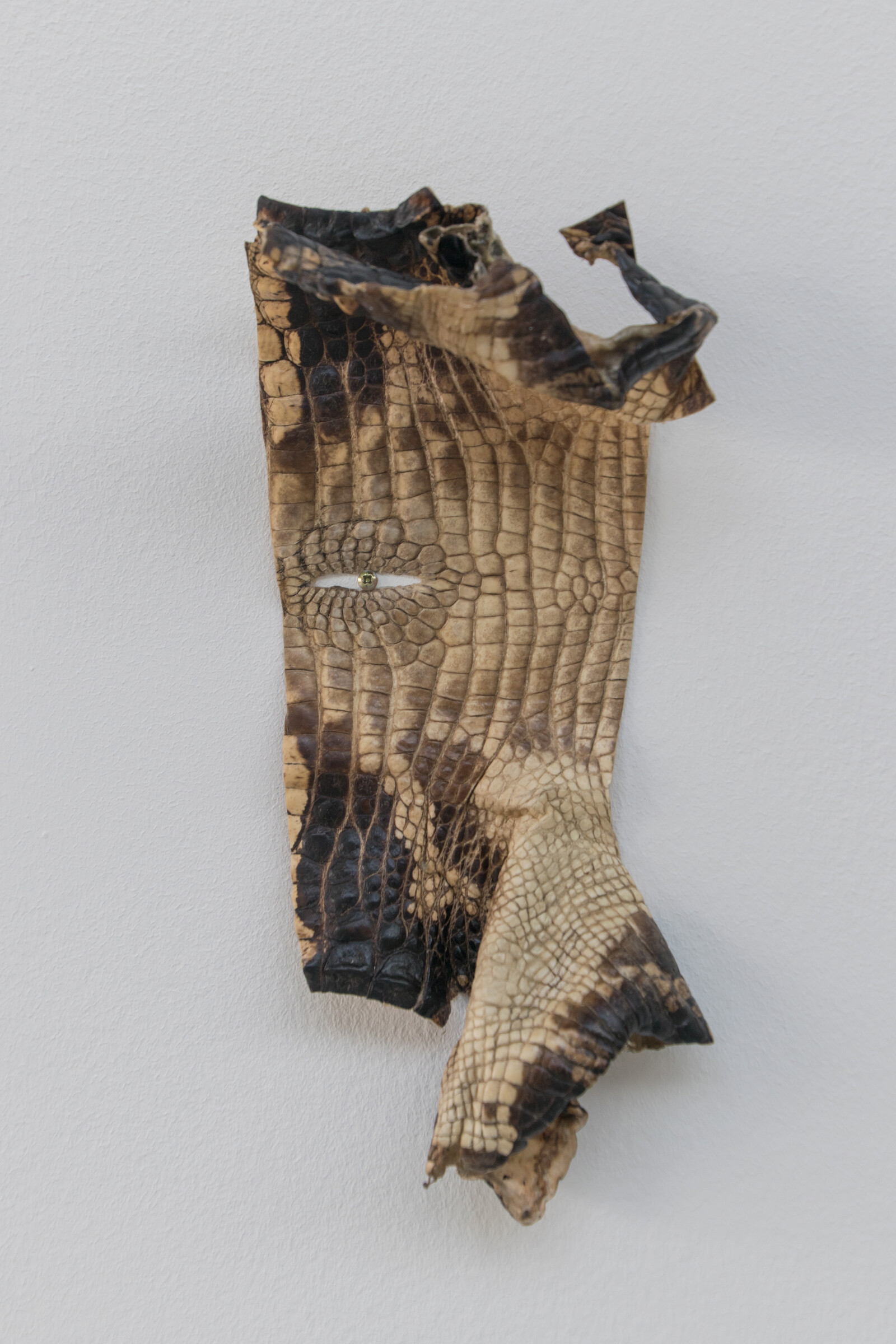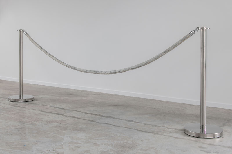 As Chambaud entangles media to manifest fuzzy categories, he tangles disciplinary fields too. This gesture is apparent in his choice of subjects and methods of display, and begs that we challenge our own expectations. Do we come to a gallery to be entertained or educated? Is it a space for production or preservation? Are these intersecting, interdependent or contradictory aims? Does our culture produce or challenge notions of what nature is? Humans are absent from the picture so it’s easier to ruminate along these lines as abstract notions—apart from the fact that the exhibition is all about how we frame the non-human world and have done so historically. Maybe it’s time to reframe: a traditional ordering of the environment hardly permits birds and humans to enjoy the same show. One more work is worth highlighting here: Undercuts (2012), a couple of steel poles with a rope hooked between them, the usual signal that the audience should keep their distance from an object. On closer inspection, it becomes clear that the rope is covered with python skin. Who or what pays the price for our culture and education?