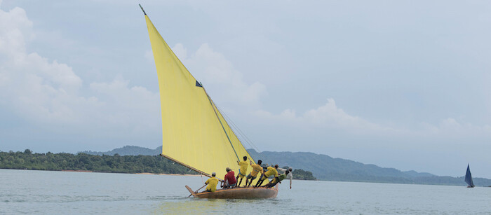The geographic loci beyond Europe are in Africa, Southeast Asia, and South America. At the City Gallery, Olympic sailor turned filmmaker Charles Lim Yi Yong’s Stealing the Trapeze (2016) is a deft re-appropriation. As a schoolboy, Lim stole a book by naturalist Peter Scott from his school library in Singapore, in which Scott describes the invention of the sailing trapeze. Evidence would suggest, however, that the device is derived from one developed long before in the Indonesian Riau Archipelago. The artist doesn’t pass comment, but counters a printed reproduction of Scott’s account with a looping two-screen video of boats under sail in parallel, towards and away from each other.