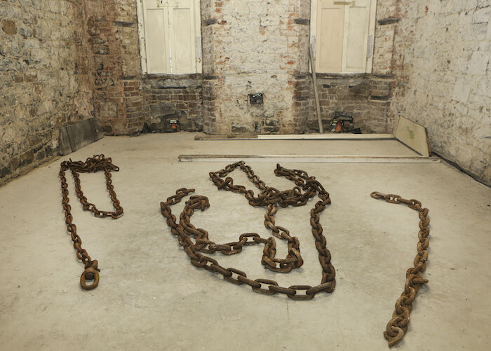 In her catalogue introduction, Koyo Kouoh calls Ireland “the first and foremost colonial laboratory of the British enterprise.” It’s a striking statement from the curator of EVA International biennial in Limerick. Titling the biennial “Still (the) Barbarians,” Kouoh uses it as a platform to consider how the legacies of colonialism affect the world today. As Kouoh mentions in her text, post-colonial discourse is scarcely present in the Irish consciousness. (Mythologizing, on the other hand, has long been a powerful tool of the Irish imagination.) This year is the one-hundredth anniversary of the Easter Rising of 1916, including the Proclamation of the Republic by rebel leaders, which began a series of events resulting in the Irish War of Independence of 1919–21 and the subsequent end of British rule. A cursory glance at countless posters advertising anniversary events suggests that this is still the case, though the celebrations have also instigated an opportune, more objective reassessment of history, one that questions, for instance, the wisdom of staging a poorly planned armed uprising in a densely inhabited urban location where innocent bystanders were bound to be killed. There’s also a fresh recognition of how retellings of the Easter Rising in the decades that followed helped stir provincial divisions. Limerick, meanwhile, is a once-great city that has experienced tough times, a fact that is written all over the city’s architecture. Though King John’s Castle, the biennial’s venue for artist Vo Tran Chau, is a magnificent symbol of Norman power, the working docks today use a fraction of their capacity.