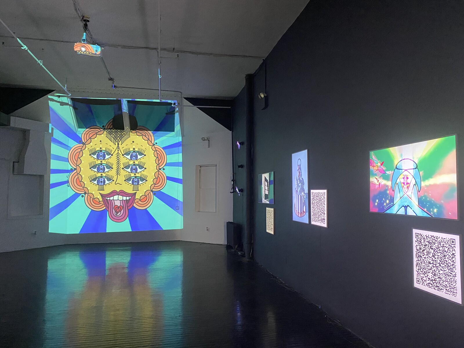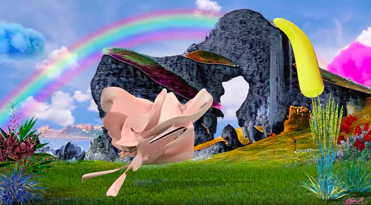 Superchief’s confusing salon-style screening scenario, however, muted the talking. In the gallery, painted dark like a blackbox theatre, 20-something flat-screen TVs and several projectors played the NFTs on individual loops. QR codes replaced traditional wall labels, but with the gallery’s ironically poor WiFi connection on opening night, it was anyone’s guess when and on which screen a work would appear. Artists stood transfixed, trying to locate their pieces. Christen Clifford punctured the silence by proudly exclaiming: “That’s my cervix!” Interiors: Cervix, that is—an NFT of her 2015 video, for which she filmed her vagina and cervix with a low-resolution sex-toy camera. Following an ovarian and uterine cancer diagnosis in 2016, Clifford underwent a radical hysterectomy, removing her cervix among other organs. The video—an abstract field of dreamy pinks—serves as both a memorial and a celebration, fitting in a year of so much loss.
