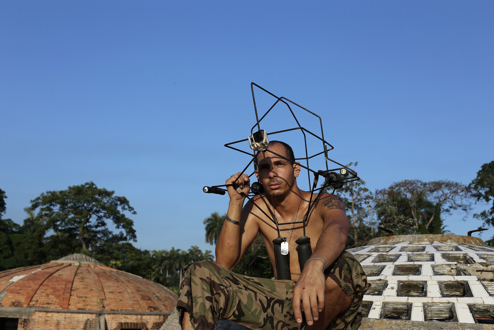 Like laws, limits are often virtual, with their power only becoming real when certain thresholds are crossed. But these thresholds are not always evident or known; they must first be discovered. “Exploring Dead Buildings” (2010, 2015) maps out and explores the relations between bodies and different canonical, abandoned works of architecture through the use of performative, mediatic apparatuses such as a cage that hangs over the body and a kart-like motorized vehicle. Yet not all limits are designed, human, or otherwise “constructed.” Opus Incertum (2008), for instance, builds the empty space into which Yves Klein launched his body in search of freedom and abandon in Leap into the Void (1960). By placing one’s body in the same position as his, one feels not only the weight of gravity, but in its clunky confrontation with the wooden artifact, also the pain of temporarily suspending it. Once limits are identified and understood, however, to approach, reach, or even transgress them can be a sublime and deeply pleasurable experience. This becomes most clear in Doppelgänger (2011), a 3D-printed artifact shaped to fit two people’s faces that brings them together for a kiss—their heads slightly tilted to opposite sides—yet ultimately prevents intimate contact, thus charging the state of close proximity and sublimating desire.