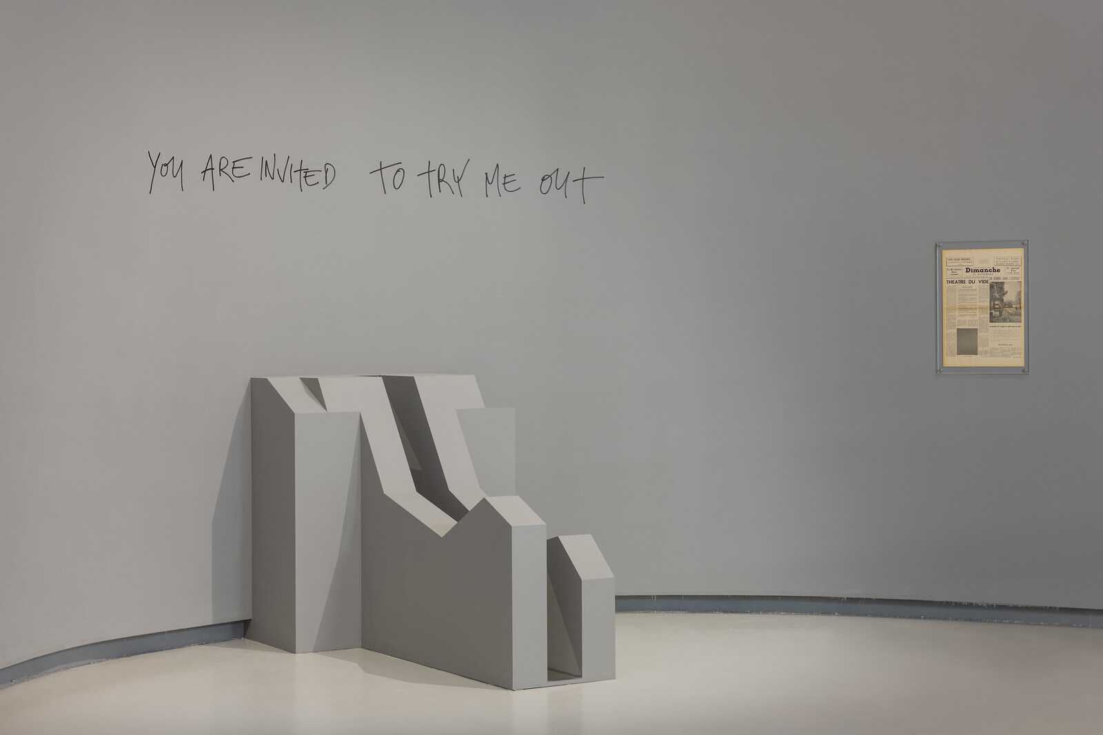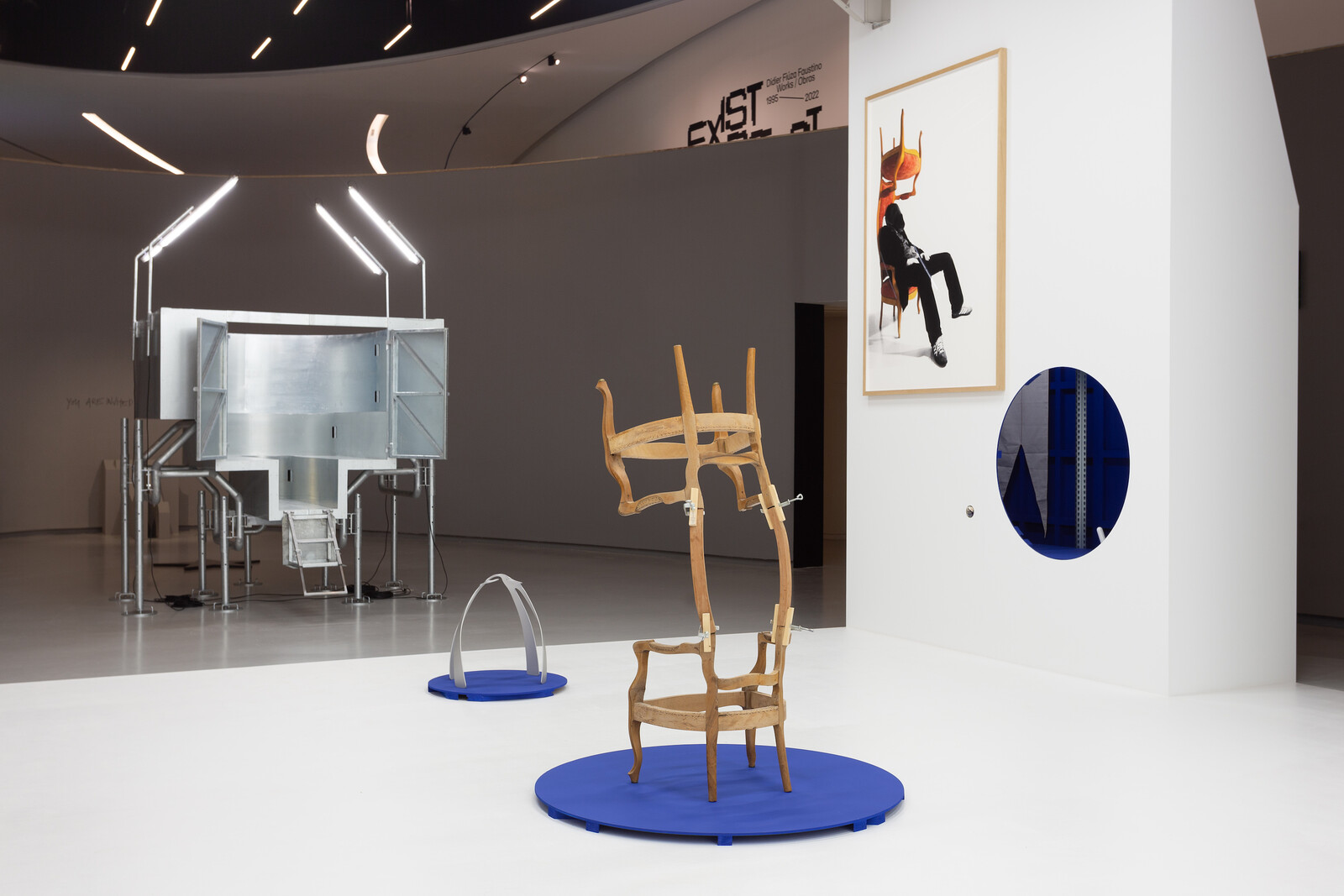 Curated by Pelin Tan, the fifty or so works on display in the central hall and a smaller side room represent just a fragment of Faustino’s oeuvre, as well as that of his architectural studio, Bureau des Mesarchitectures, which also designed the exhibition. It is unfortunate that the relationship between Faustino and his studio is left unresolved within the exhibition, given that Faustino (or his studio?) has been increasingly realizing more permanent buildings and other architectural spaces, including interiors, houses, apartment buildings. While it is clear that Faustino’s practice as an artist is informed by architecture, it would have been relevant to focus more on the opposite trajectory of influence. Faustino understood early on that artistic practice provided him the opportunity to more practically engage with concepts, questions, and concerns that are inherent to architecture such as norms and normativity, comfort, and desire. What is not entirely evident in the show, however, is how—and to what extent—his critical agenda towards space, design, and bodies might become operative in architectural practice. Yet what Faustino’s practice teaches us is that to identify a limit is to act upon it. To formalize limits is to render material their power, and demonstrate that it is always capable of becoming something else.