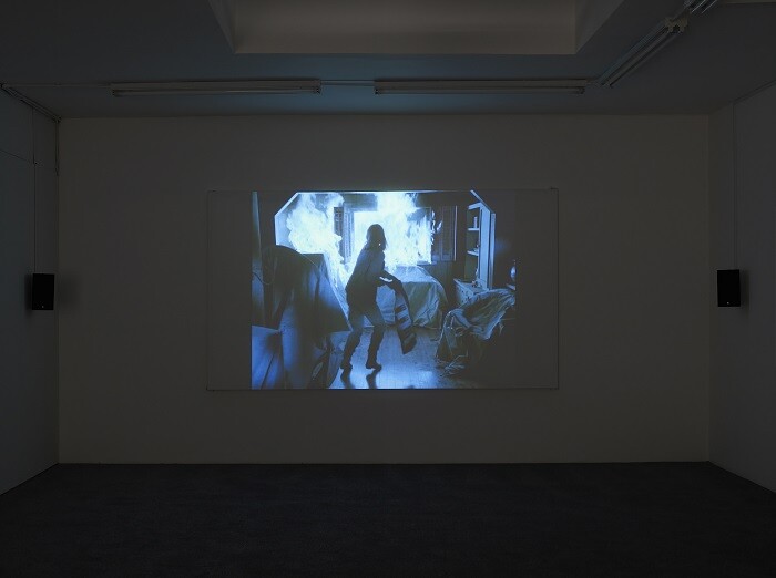 The program raises familiar issues around the slippage between black box and white cube. The 45-minute screening, exhibited with excellent projection and sound, was shown once daily at 4 p.m., with ample light leaking into the viewing area. One wonders if it might have had a different impact as an event in one of London’s many cinema spaces for artists’ film, or how the program functions as a modest, non-profitmaking project in a commercial gallery. The trade-offs—free admission but limited showings, excellent image and sound but a light that washes out the picture—can be overlooked in a screening that teems with darkly affective potential.