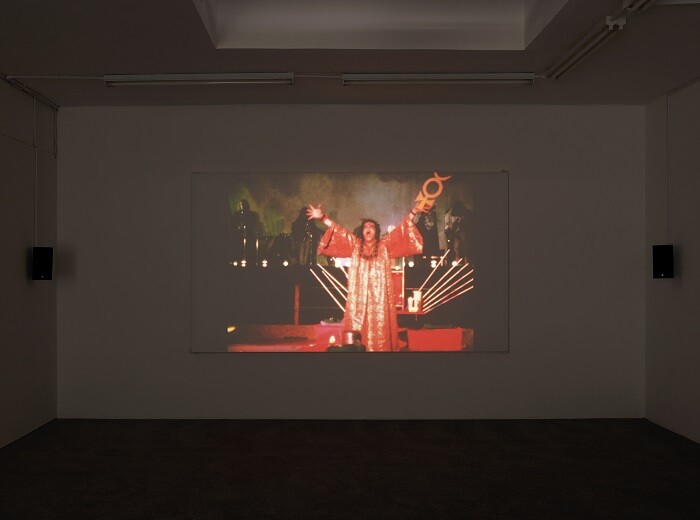 The Dark, Krystle, which reimagines the popular 1980s television series Dynasty as a baroque, melodrama-tinged Euro-horror film, harnesses the latent dramatic energy of its female actresses/characters towards a new spectral end. Robinson, Cantor, and Basma Alsharif’s works utilize dark, usually unforeseen energies in a hauntological manner from images, sounds, or—in the case of Alsharif, whose video Deep Sleep (2014) shows architectural ruins in Malta, Greece, and Gaza—places. That this screening represents a body of research for Gibson’s two upcoming 2018 film works—one of which is an adaptation of an unrealized Gertrude Stein film script—suggests that these spectral energies are not only to be read aesthetically but toward the task of realizing a project with unfulfilled potential. Thus, the inclusion of Anger’s Invocation represents not only an ur-text, a genuinely satanic experience while the other works reach toward it, but also a career of half-realized projects, lost films and production nightmares that stand against the sanguine Magick Lantern Cycle works which he did accomplish. By putting this group of works into a public discourse through the form of an exhibition, Gibson suggests some of their techniques as potential avenues toward her works in progress, creative approaches to adaptation, or possibilities that hypnagogic re-imaginings of older texts can enable.