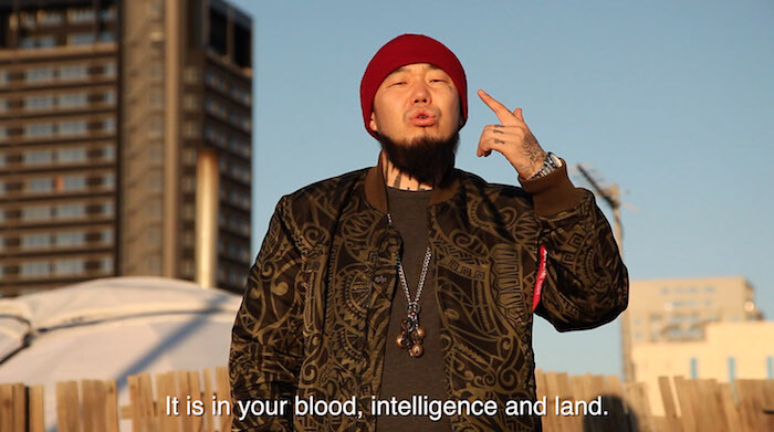 “Five Heads (Tavan Tolgoi)” opens with video Gee, Ulaanbaatar, October 2017 (2018), an interview with the Mongolian rapper Big Gee filmed by artist and researcher Hermione Spriggs (who curated the exhibition) with Alice Armstrong and Curtis Tamm. Gee reflects on the complicated relationship between the Mongolian government, population, and the rapid economic and political changes in the country—themes which are further explored by the other works in the show. “In 2011, foreigners used to call Mongolia mine-golia,” Gee says. The country’s government told people they would get rich from mining. In fact, the selling of mining resources caused environmental degradation and starved citizens of any benefit. By 2015, the miners had relocated, leaving a polluted landscape and a country in debt.