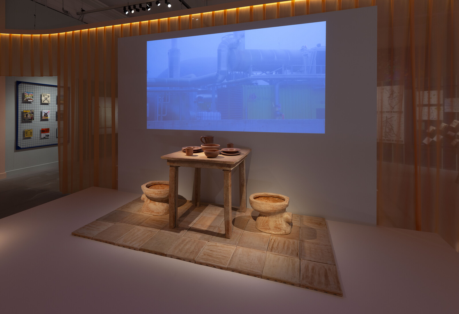 After all that, though, we need the bitterness of a digestif. The show enlists many touching projects, like artist Jasleen Kaur’s Curry Measure (2013), putting her parents’ idiosyncratic Tala curry measurement cup back into production and circulation; or Totomoxtle, using heirloom corn husks from producers in Mexico to create furniture. But only a token acknowledgement of the realities of the efforts behind our food systems, in the form of a severely condensed version of Nikolaus Geyrhalter’s unflinching documentary on large-scale food production Our Daily Bread (2005), is included here. The overall atmosphere of “Food” is of a swish trade fair that, rather than suggesting necessary modifications to what and how we’re eating altogether, offers well-designed, consumer-friendly products that tweak on the outputs of the current system, implicitly telling us it’s OK to continue as we are. (Which, in this opulent setting, carries a whiff of genteel banqueting among colonial spoils, if not just feasting among the ruins.) I’m left wondering what it would be like to for an institution like the V&A to use its weight to create a space where artists and producers might bend the laws to radically outmatch the mindboggling stuff that’s already at our tables, or even just to make an exhibition that deals with the actual food system as it is—could I see the menu again?