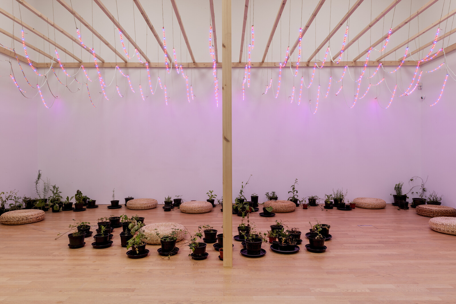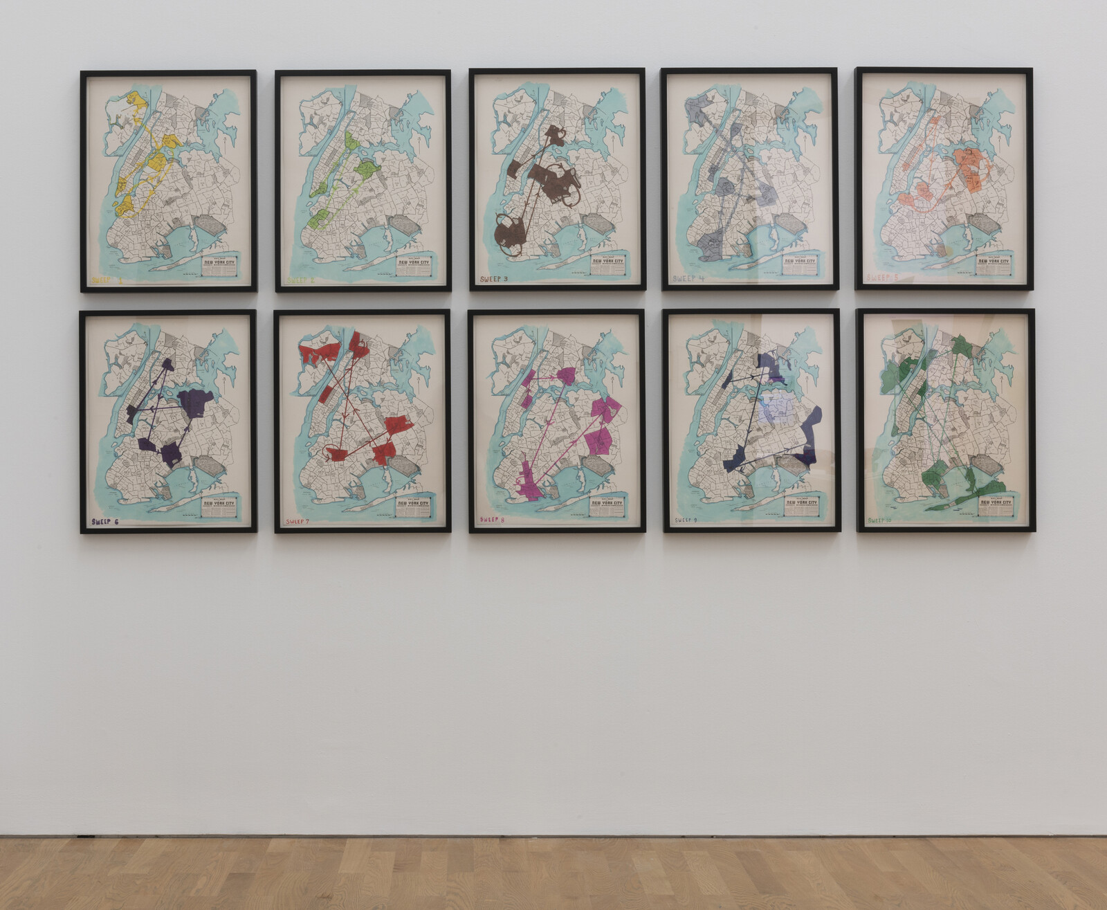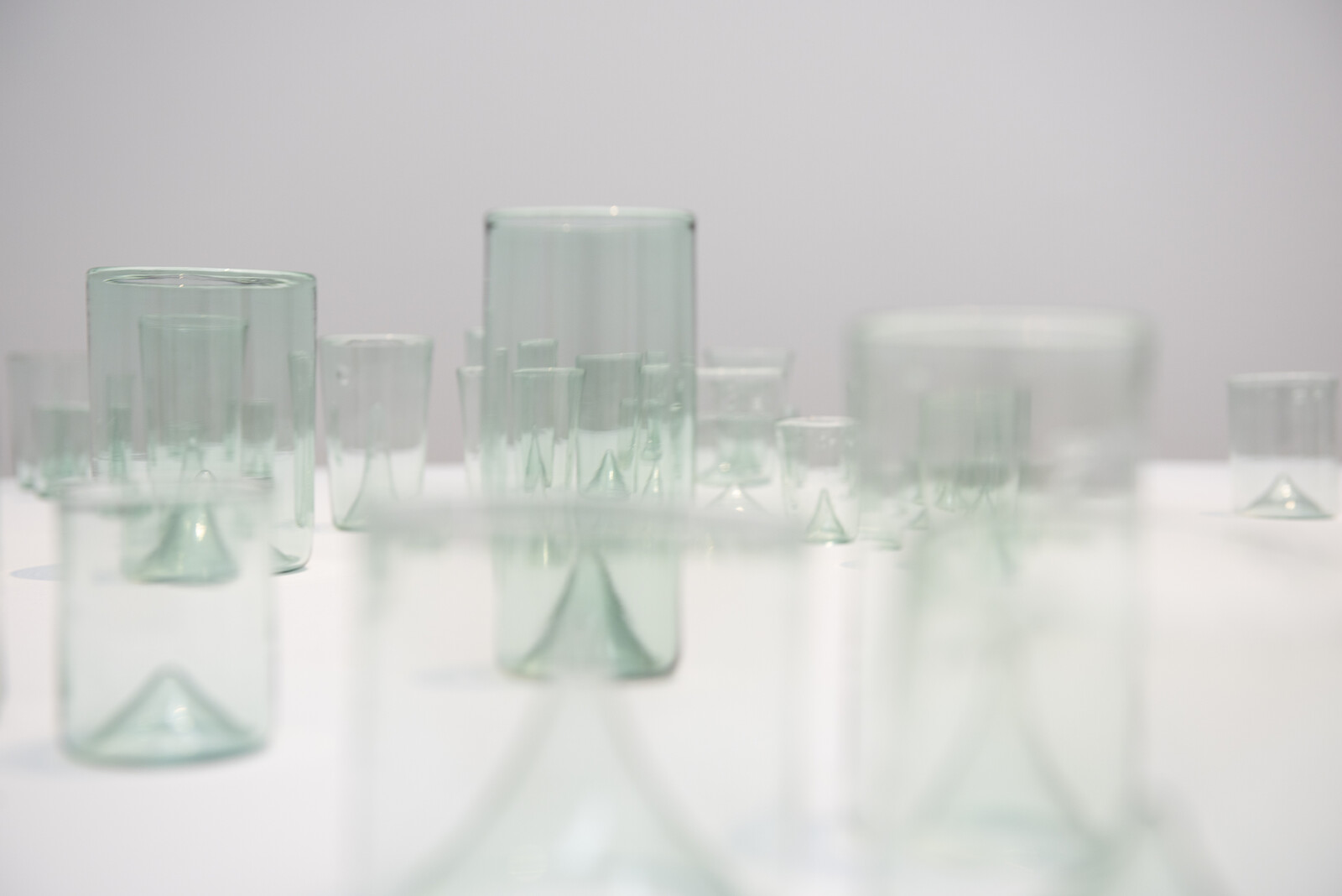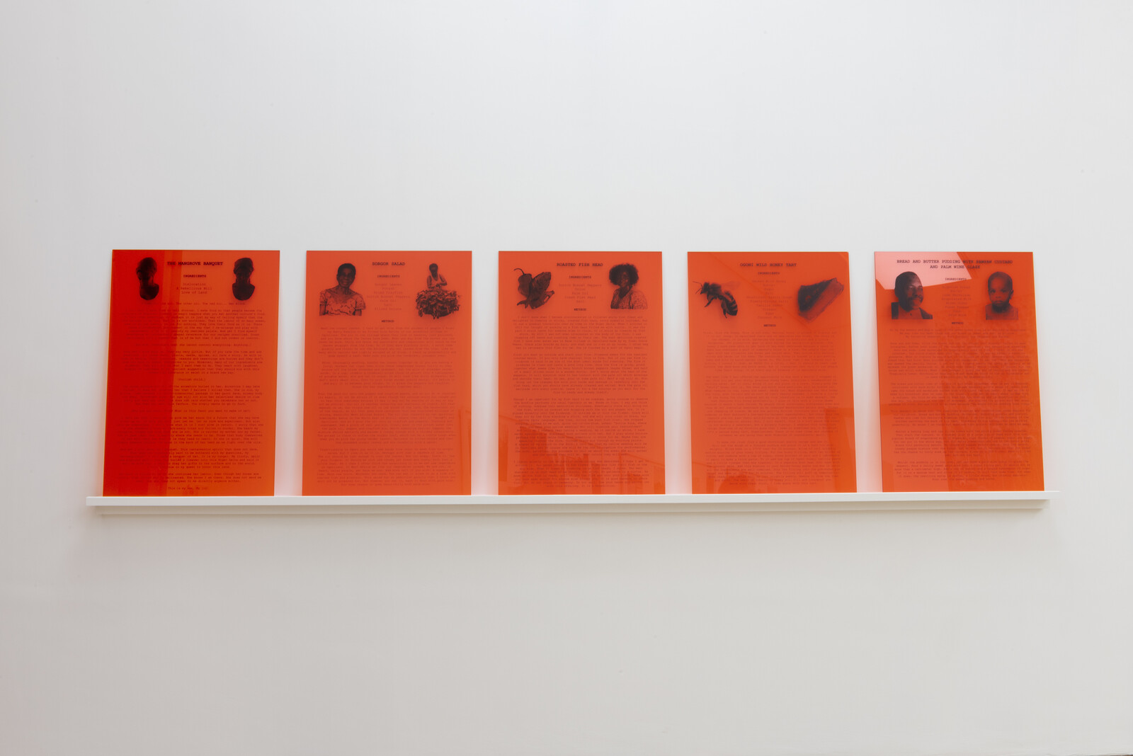 Disappearing places and people thread through a number of works. Anne Vibeke Mou’s delicate group of glass sculptures, A story of its own telling (2018/10), sit atop a low circular plinth. Made during a residency at the Corning Museum of Glass in New York state, Mou crafted the glass using traces of crushed fossils from the Gilboa Fossil Forest in Upstate New York. In so doing, she reminds visitors that—as has been painfully evident from recent forest fires in the Amazon—Earth’s great forests are as liable to rapid destruction as fragile glassware. Yet another video, Zina Saro-Wiwa’s five-channel Karikpo Pipeline (2015), offers a striking comment on colonial resource exploitation and the re-appropriation of abandoned infrastructure in Africa. Wearing antelope masks, Ogoni men from the Niger Delta region perform acrobatic movements over and across the remnants of exposed pipelines and old wellheads—a symbolic act of resistance and a ritual imagining of new futures for the exploited land.