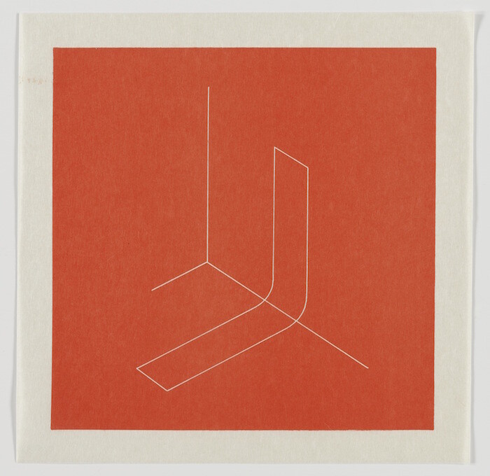Like other Minimalist artists, Sandback’s concentrated work is an art meant to be seen and experienced rather than intellectualized. His works are not ideas translated into material, but are means and subject, actualities that imply phenomenological relations with spatiality. At Lawrence Markey, we see how the artist used prints as a point of reference, but also as autonomous works with the compelling power of his sculptures to create the illusion of spatial depth. As the prints on view here are all editions, they also follow the non-hierarchic logic mirrored in Minimalist artists’ interest in symmetry, seriality, and repetition, creating a kind of beauty that’s accessible to diverse publics.