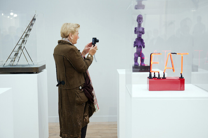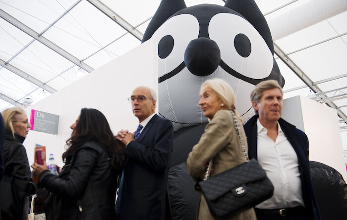 Sociologists have a name for the acute disorientation that half an hour at Frieze London can induce: the “Gruen effect.” Named after Victor Gruen, the Austrian émigré who designed America’s first malls in the 1950s, it describes the sense of temporal and geographical dislocation that sets in when you enter a shopping center. Thrust into a windowless, self-contained space, surrounded by complex arrangements of enticing objects under artificial lights, you begin to lose track of where you are. This is true of Frieze, the layout of which is so complex, and so repetitive, that it is impossible not to get lost however many times you consult the map.
