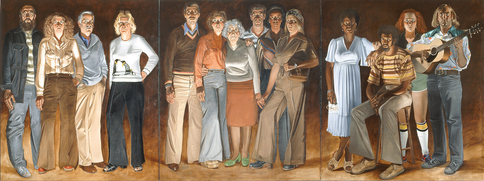 In the Spotlight section, devoted to solo presentations of historical works, Brooklyn’s Southfirst brought a selection of performative photographs by Jared Bark, made between 1969 and 1976, for which he employed the predetermined grid of the automatic photobooth strip, reprising the gallery’s recent critically acclaimed exhibition of the artist. Honor Fraser, Los Angeles, featured early works by Kenny Scharf, including an array of psychedelically painted consumer electronics—boomboxes, answering machines, and blenders—from the early and mid 1980s. New York’s Bruce Silverstein Gallery’s booth was dominated by the massive three-panel mural Americans, Youngstown Ohio (1977-78) by Alfred Leslie, a stark, realist portrait of the town’s residents painted shortly after the closure of a factory anchoring the local economy. I disliked the painting, with its dour palette, ungainly figures, and shallow humanism, but admired the gallery for bringing something so insistently unfashionable.