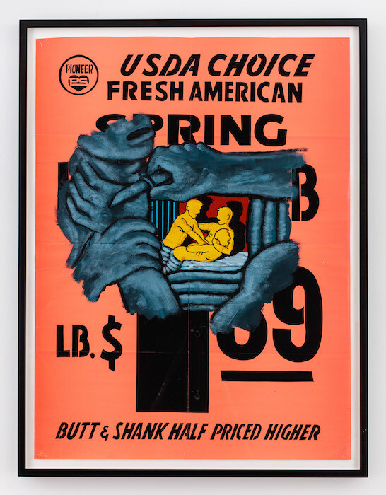 All of that being said, Frieze is—to lift a word that recurs in the press release— typically far more “dynamic” than its main New York competitor, the Armory Show, and this year's version contained plenty of highlights. On entering the fair grounds, located on Randall's Island, by the North entrance, one is confronted with the first of Frieze NY's site-specific commissions, a giant inflatable balloon baby by Alex Da Corte (Free Money, 2016). While gleefully perverse with its unsettling, toothy grimace, the work sits firmly in the tradition of giant, kitsch, pop-sculpture that Isa Genzken has been doing much better for years. Immediately inside the fair proper are a number of standout booths. Of particular note, New York gallery P.P.O.W presented a rarely seen installation by David Wojnarowicz, which was commissioned by collectors Robert and Adriana Mnuchin in 1985 for the basement of their Upper East Side townhouse. Accompanied by drawings by the artist from the same era, Untitled (Burning Boy Installation) (1985) draws from the Mayan genesis myth of Popol Vuh, depicting an apocalyptic cityscape of Manhattan on six masonite panels. Scattered in front of these is detritus collected from the ruins of Alphabet City and the Bronx and two further sculptural elements, a life-size young boy, with paper flames shooting out of his body, running towards a dead tree with cinder blocks piled up around it and animal skulls dangling from its branches. It is a powerful and abrasive work, and one that is deeply specific to its moment in time in the New York art world—one that exists in uneasy relation to today’s, which is all too eager to trade on the former’s artistic legacy.