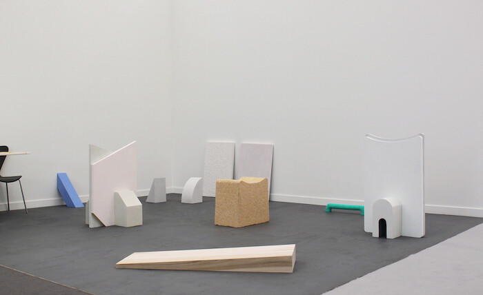 Also in Frame, Chicago gallery Night Club is showing work by Gordon Hall, whose elegant sculptures are informed by the New York artist’s background in performance. Consisting of softly colored drywall objects modeled after architectural, interior, and linguistic motifs, many of which are indexical to the artist's own body, the installation is designed to be rearranged daily into different object-based “sentences.” There is also a script, read daily by the artist and gallerist Matthew Steinbrecher, which draws out how the relationships between the installation’s objects also stand in for relationships between bodies.