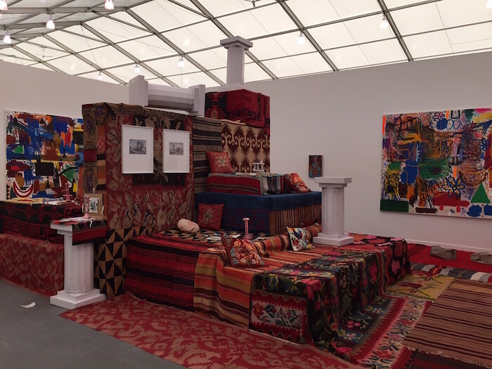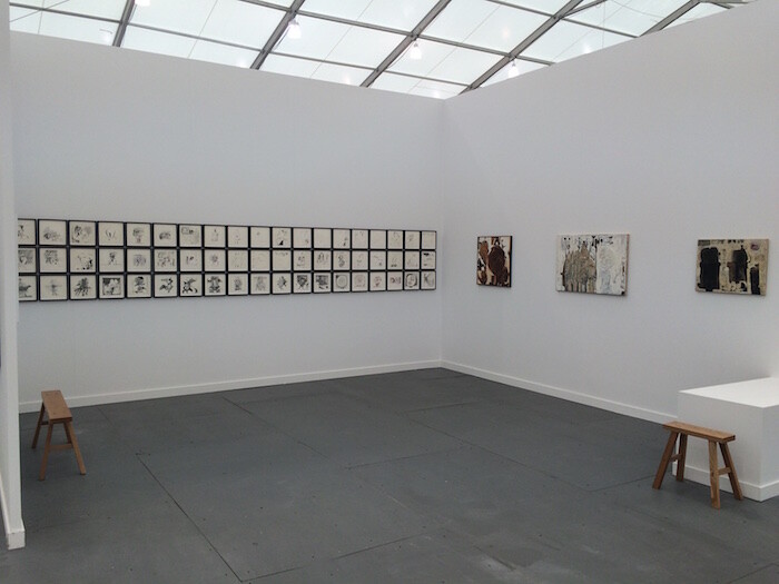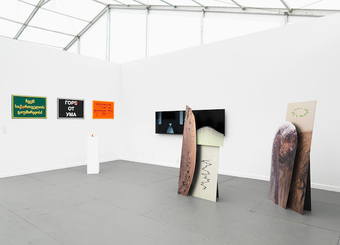 The few exhibitors who tried to resist this pervasive tendency did so by combining historically and geographically specific work with analogous contemporary practices. Paris’s Galerie Frank Elbaz assembled a stellar showcase of art from the former Yugoslavia, with memorable contributions from Josip Vanista, Mladen Stilinović, and Julije Knifer. Bogota-based Casas Riegner showed subtle, thoughtful contributions by Carlos Rojas, Bernardo Ortiz, and Johanna Calle. Berlin’s Galerija Gregor Podnar paired terrific, seldom-seen 1970s work from Ion Grigorescu, Irma Blank, and Goran Petercol, with strong recent pieces by Tobias Putrih and Anne Neukamp.