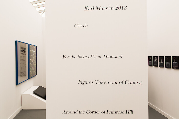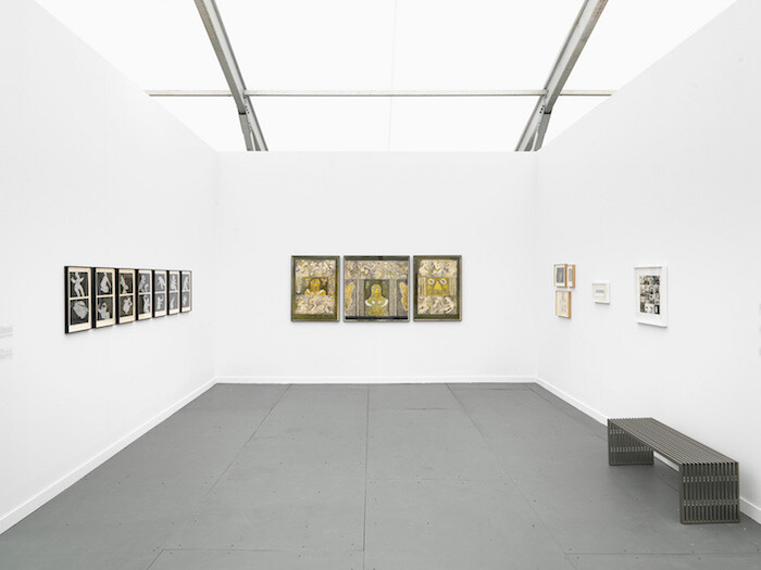 While the commercial success of Frieze New York is sometimes ascribed to the moribundity of its competition, it likely also derives from its canny application of the biennial formula. Though New York still fancies itself the center of the global art world, its connections to the biennial and fair circuit have been rather belated and indirect. Such conditions have surely increased the appeal of the Frieze brand, with its cosmopolitan, sophisticated connotations. The 2015 edition traded on this cachet by convening a team of international curators, a number of them with biennial experience. Not surprisingly, the majority of the fair’s more impressive offerings were in the stalls that had effectively been pre-curated. Shanghai’s Antenna Space exhibited a sharp suite of works by Liu Ding, “Karl Marx in 2013” (2014), one of which turned on the artist’s confrontation with Chinese tourists at Marx’s grave in London. Warsaw’s Le Guern Gallery showed compelling selections from C.T. Jasper’s photomontage series “In the Dust of the Stars” (2011). The Spotlight section, advised by Adriano Pedrosa, was a quiet revelation amidst the overweening vulgarity of the fair. Some of the artists shown there, like the marvelous Sudanese modernist Ibrahim El-Salahi, presented in London’s VIGO booth, have received major shows in Europe but remain largely unknown in the U.S. Others, like Geta Brătescu, whose drawings and collages were on view at Bucharest’s Ivan Gallery space, spoke to the formidable, largely uncharted range and depth of Eastern European conceptualisms. Such practices are still often treated as isolated curiosities despite their exposure to (and transformation of) Western models; one fascinating example of such an encounter was Natalia LL’s series of performance photos from 1977, “Natalia LL at LGBT Demonstration in New York,” shown by Warsaw’s lokal_30.