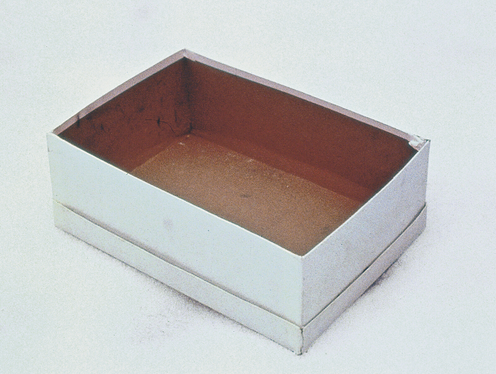 The second gallery, “Earth: Ground,” starts strong. One of Orozco’s major hits rests on the floor: the Empty Shoe Box (1993) shown at that year’s Venice Biennale. Here his gambit-prone, playfully transgressive spirit feels alive, sitting right across from “First was the Spitting I-IV,” made that same year, a series of alluring drawings made with toothpaste spit and tiny circles baroquely sprouting from its dried stains. A group of yellowing, polyurethane foam sculptures (Spume 3 & 6, 2003) hangs overhead, their naturalistic forms gracefully evoking flying fish from a nasty chemical material. They float near an array of forgettable recent paintings, and many other inconsequential pieces grouped together with no apparent relation: a map of Chapultepec next to some papier mâché sculpture of socks (Socks, 1995) and an onion peel sitting on a plasticine glob (Onion Crown, 1994).