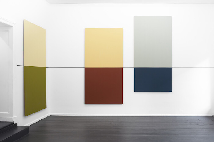 Mehdi Chouakri presents a series of abstract sculptures by Posenenske from 1967, as well as a selection of works on paper from the 1950s in their second space, also in Charlottenburg. Displayed in glass vitrines and hanging on the wall, the latter are sketches of a site-specific commission that combined constructivist shapes and lines with color design. Part of a continued attempt to bridge a dialogue between architecture and the dweller, Series Relief B and C (1967-2017), a range of modular aluminum and sheet-steel sculptures coated in RAL standard tones, appeal to this same constructivist language and concern with primary color. Preceding Posenenske’s 1968 manifesto, the “Series Relief” were created as a set of industrially manufactured elements, which can be reproduced as yet another consumer article.