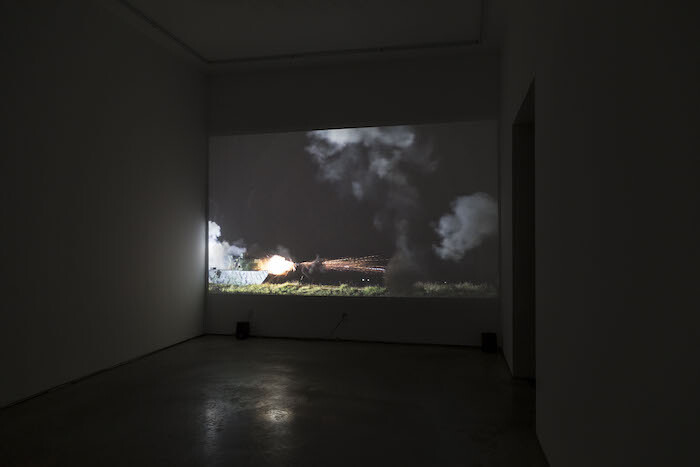 The 2017 earthquake came just two hours after the annual emergency drill that marks the anniversary of the 1985 disaster. In Goldbard’s version, speakers attached to the skeletal arches play a clattering recording of the scene at the Plaza de la República 32 years ago, when the tree-lined marble pavement around the Monumento a la Revolución became a relief center and refugee camp. In a loop of Goldbard’s videos, a tank burns in a field, a giant portrait bust is dumped into a river; faux monuments blow up and burn, in celebration and in effigy.