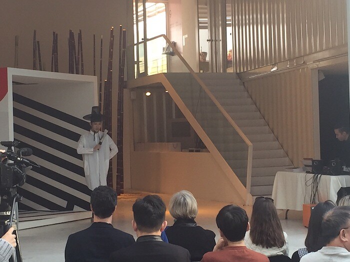 The architectural division of the museum—in which an uninspiring hodgepodge of (predominantly European and American) modern and contemporary art is afforded equal billing with an exceptional collection of traditional Korean ceramics, paintings, and calligraphy—offers an analogy for the split cultural inheritance of contemporary South Korean art. Lee Kun-yong’s performances, the subject of a retrospective at Gallery Hyundai, offers one response to that dilemma, sidestepping issues of aesthetic or ideological allegiance in a divided country by seeking to transcend them: as in the Korean monochrome movement that emerged in the postwar period, an impersonal and universalist vision of art is posited as inherently resistant to narrow and repressive social structures. By contrast, Gallery Weekend Korea’s “showcase exhibition” suggests a greater focus on the local and particular—on exploring rather than eclipsing difference—among emerging Korean artists.
