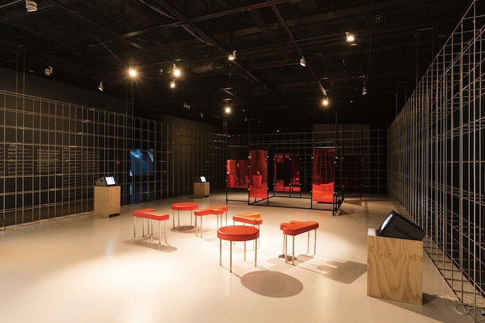 The most striking was a fixation on identity, whether individual, national, or the intersection of the two. Running along the three walls of a recess, Mari Kim’s quasi-psychedelic anime-style portraits insert kawaii female personae—her “Eyedolls”—into a variety of different roles, like a K-pop Cindy Sherman (Farewell My Concubine 3, 2015, is one of a series appropriating Chinese cultural referents, from posters of Mao to contemporary cinema). Lee Seung Hee’s Bamboo (2015), a cluster of five-meter-tall ceramic bamboo stems planted into the concrete floor of the exhibition space, restaged an archetypal South Korean landscape in an environment as far removed from that idyll as could be imagined. In the context of a cultural initiative supported by the national tourist board, the glazed grove read like a neat commentary on the instrumentalization of contemporary art and natural beauty as enticements to foreign investment. Yet it also alluded to the history of Korean pottery and porcelain so magnificently inventoried at the nearby Leeum, Samsung Museum of Art, and was indicative of a wider engagement among the artists exhibited with local circumstances and traditions.