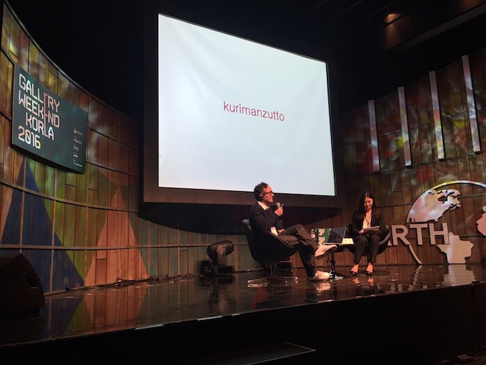 The possibility of reconciling a close attention to local conditions with an international appeal was one subject of an illuminating talk at Gallery Weekend Korea by José Kuri, co-founder of Mexico City’s Kurimanzutto. His success in bringing a generation of Mexican artists to the attention of the international art scene, and Kurimanzutto’s contribution to its capital’s burgeoning cultural reputation, were of obvious appeal to Seoul’s aspiring gallerists. Yet his eminently sensible advice (“we opened the gallery because there were artists, not because there were collectors”) was met with some resistance from an audience eager to hear revealed the hidden secrets of commercial success. Kuri’s insistence that young spaces should keep their overheads down (the gallery’s early motto was “cheap, fast, and out of control”) so as to minimize commercial pressures aroused mild hostility, as if it constituted a dereliction of a gallery’s duties to its artists or a failure of ambition. That the success of Kurimanzutto was attributable to its artists’ “going deeper” into Mexican culture wasn’t, consequently, developed. But that it is possible to make a virtue of a marginal position seemed pertinent: the gallery’s program was distinguished, rather than diminished, by its relative independence from global trends.