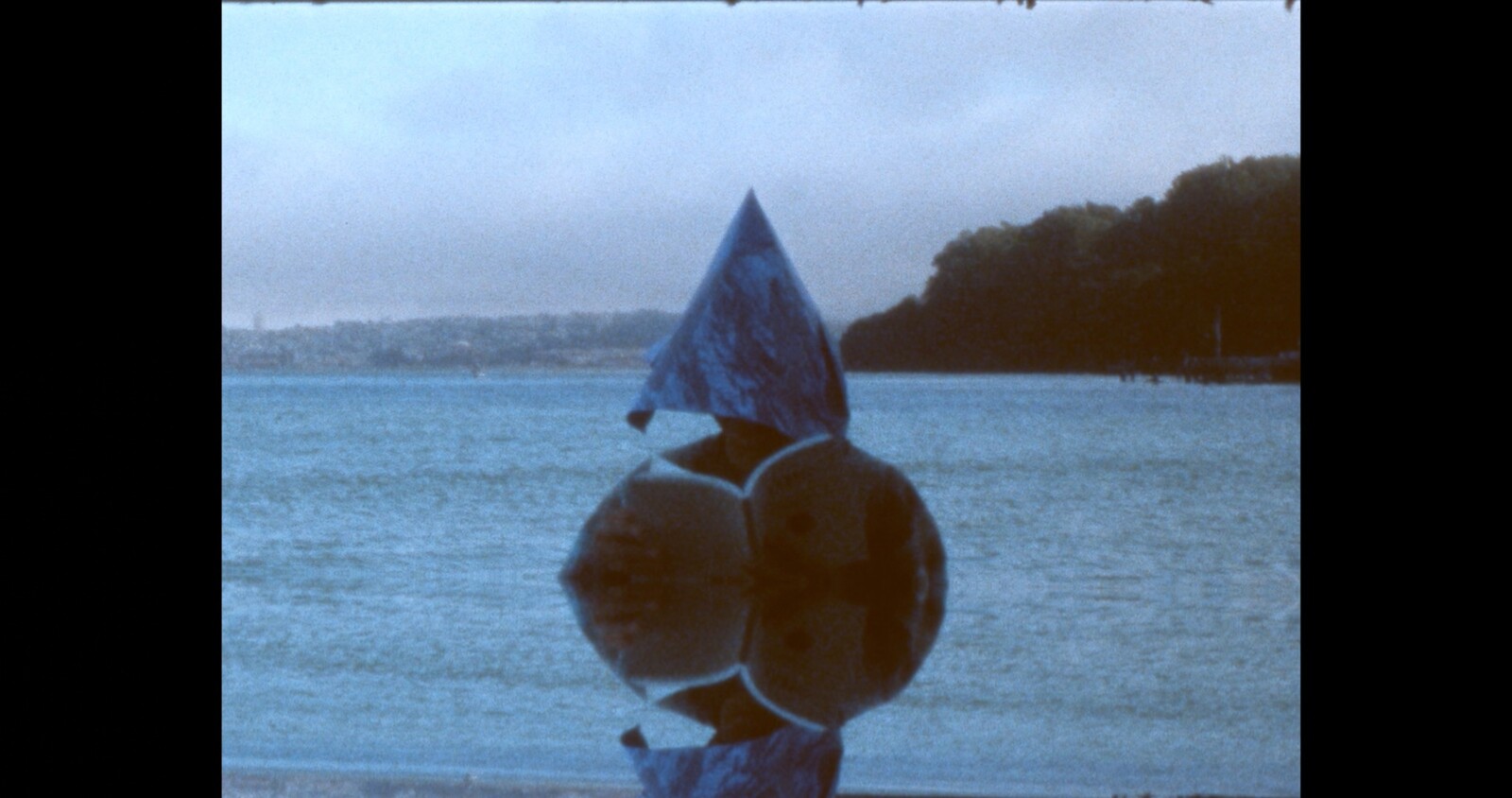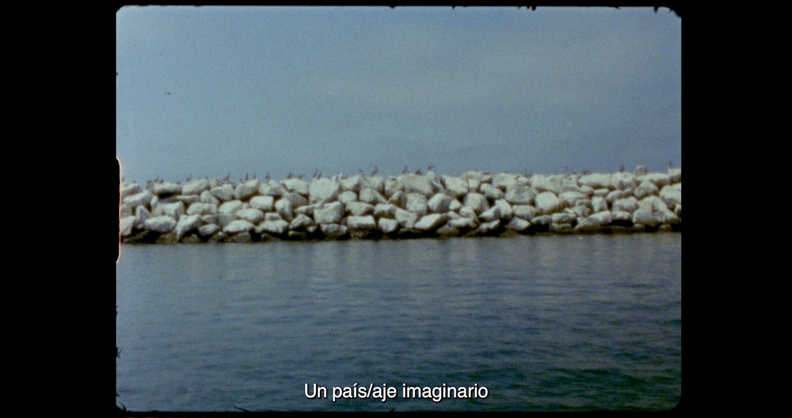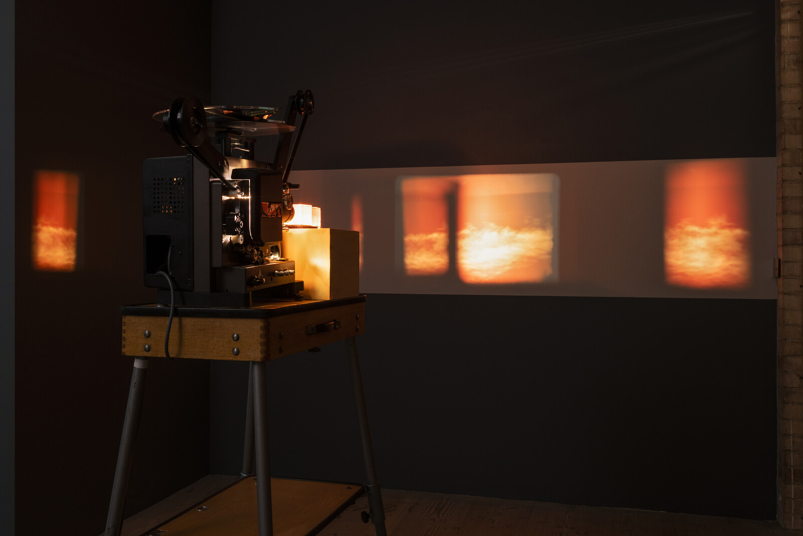 Black-and-white images of Pacific waves in The Retreat’s prologue reappear in To Keep the Mountain at Bay (2023). This taut nine-minute video, originally shot on Super 8, features layered and sampled quotations and footage to center the unmoving, extratemporal figure of the mountain as a vehicle for thinking differently about, or with, displacement. It opens by quoting “Journey to Mount Tamalpais” (1986), a lyric essay by Etel Adnan—another “undisciplinary” artist who shapeshifted across media to articulate both the grief and liberation of exile, always in dialogue with the communities and political lineages which shaped her. Giving the exhibition its title is a third, very short, film shown as a 16mm projection, drawing on Gulliver’s Travels—not the 1726 novel but its 1939 Fleischer Studios adaptation—hand-edited to subvert its colonial messaging. Here as elsewhere, Khoshgozaran complicates the politics of movement: of bodies across geographies, and of images across eras.