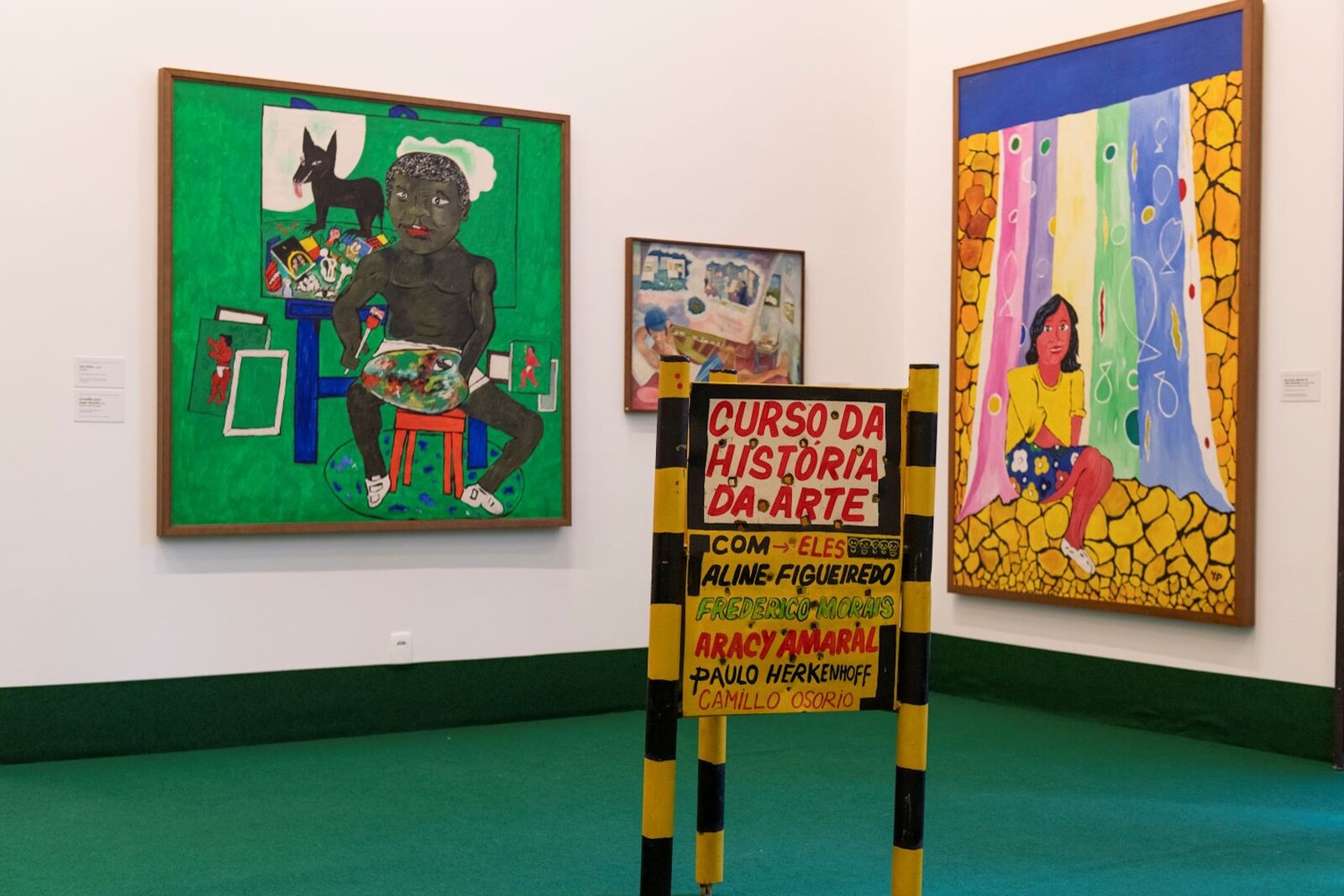 I entered Gervane de Paula’s three-room retrospective by the wrong door, meaning that I saw this chronological survey in reverse order. By the time I came to view the works with which the exhibition is supposed to open—the artist’s earliest paintings, from the 1970s, show sunny scenes of life in his home state of Mato Grosso, in the Central-West Region of Brazil—I was aware of the dark clouds that would gather over his vivid later canvases and Arte Popular-inspired sculptures.