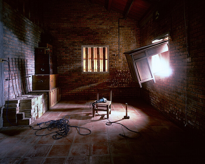 In terms of local representation, the biennial deserves kudos: out of 50 artists in the exhibition, 20 are Taiwanese. Three of them reflect the curator’s preferred methods of research and performative collaboration, with political implications. Hong-Kai Wang’s multichannel video The Band of the Awful Ones (2016), produced during workshops at Taipei’s Guling Street Avant-Garde Theatre, features performers improvising reactions from anger to fear in response to a restrictive bandit law imposed during the Japanese colonial period (1898–1915). Prophet (2016), a video by Su Yu Hsien, restages a Taiwanese avant-garde play from the 1960s with its original directions and actors. A couple (performing increasingly rapid and agitated banter, like the characters in Edward Albee’s 1962 play Who’s Afraid of Virginia Woolf?) remain seated in the audience, while the curtains open and close on the stage. Taiwanese artist Yeh Wei-Li presents work related to his ongoing investigation of artist Yeh Shih-Chiang (1926–2012), whose house museum he has carefully constructed—and which becomes a set for his photographic tableaux.