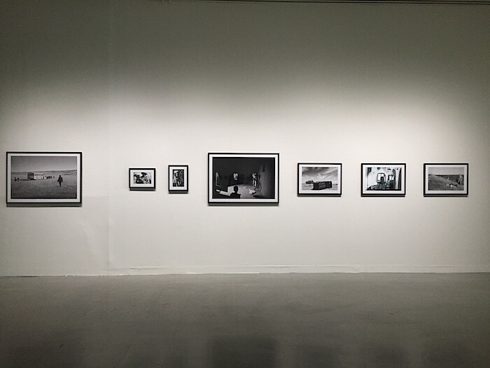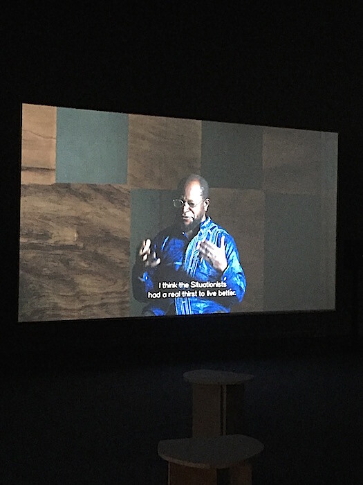 Identity politics as a curatorial grouping strategy proves more slippery. One gallery on the second floor confines several Korean artists’ work—in divergent styles—to the same corridor. Works with African subjects are also grouped together. Vincent Meessen’s video installation One.Two.Three (2015) is a captivating look at Congolese musician M’Belolo Ya M’Piku’s Situationist International anthem. Forgotten by radical political history, M’Belolo tells his story and directs a new interpretation of his song. Nearby, South African artist Santu Mofokeng presents two series of black-and-white photographs from the 1980s and ’90s depicting rural life, as well as The Black Photo Album/Look at Me 1890–1950 (1997), a slide presentation of found photographs of black working- and middle-class people. Mofokeng intersperses what might otherwise be viewed as “anonymous” images of stiffly posed subjects in The Black Photo Album, which he collected from ten South African families, with identifications of the subjects (when known), information about the way the photographs were found, and observations like “Are these images evidence of mental colonization or did they serve to challenge prevailing images of ‘The African’ in the Western world?” Ângela Ferreira, born in Mozambique and living in Lisbon, shows the installation A Tendency to Forget (2015), which criticizes the supposedly “apolitical” Portuguese anthropologists Margot Schmidt and António Jorge Dias through a look into their personal archives. The work comprises a suite of photographs of Lisbon’s ethnological museum and former Portuguese Overseas Ministry and a built structure mimicking the façade of the Ministry, which houses a film parsing the duo’s racial biases and sympathies with the Salazar regime.