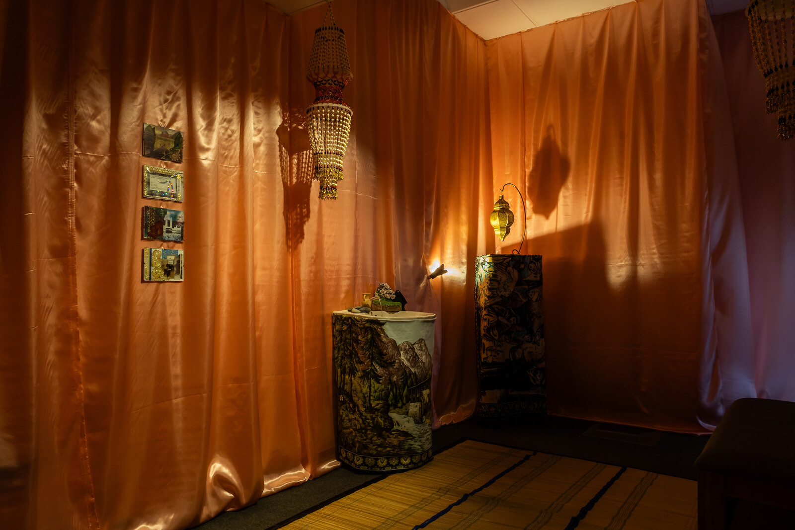 Occasionally, the environment was more than the art could take. “Unnatural* Urges,” a group show of queer, critterish works at Queen’s Park Glasshouse, was supposed to feel joyfully outlandish, I think, but the works couldn’t compete with the plants: calla lilies with erect knobbly stamens like mini sex toys; potted trees with plaited trunks; spider plants growing babies out of their arms. I felt slightly embarrassed about being a human—we are such a tryhard species, constructing our “works of art,” like the person who is wearing fancy dress at a party where everybody else is in plainclothes, and effortlessly better looking. “Unnatural* Urges” had the effect of reminding me what’s good about the white cube—which would, I think, have given room to the works that were packed in here: Clay AD’s carved wooden offcuts, Jack Murphy’s pickles with faces; Laura Lulika’s assemblage of baby gear and medical baggage; Hang Linton’s ethereal soundscape.