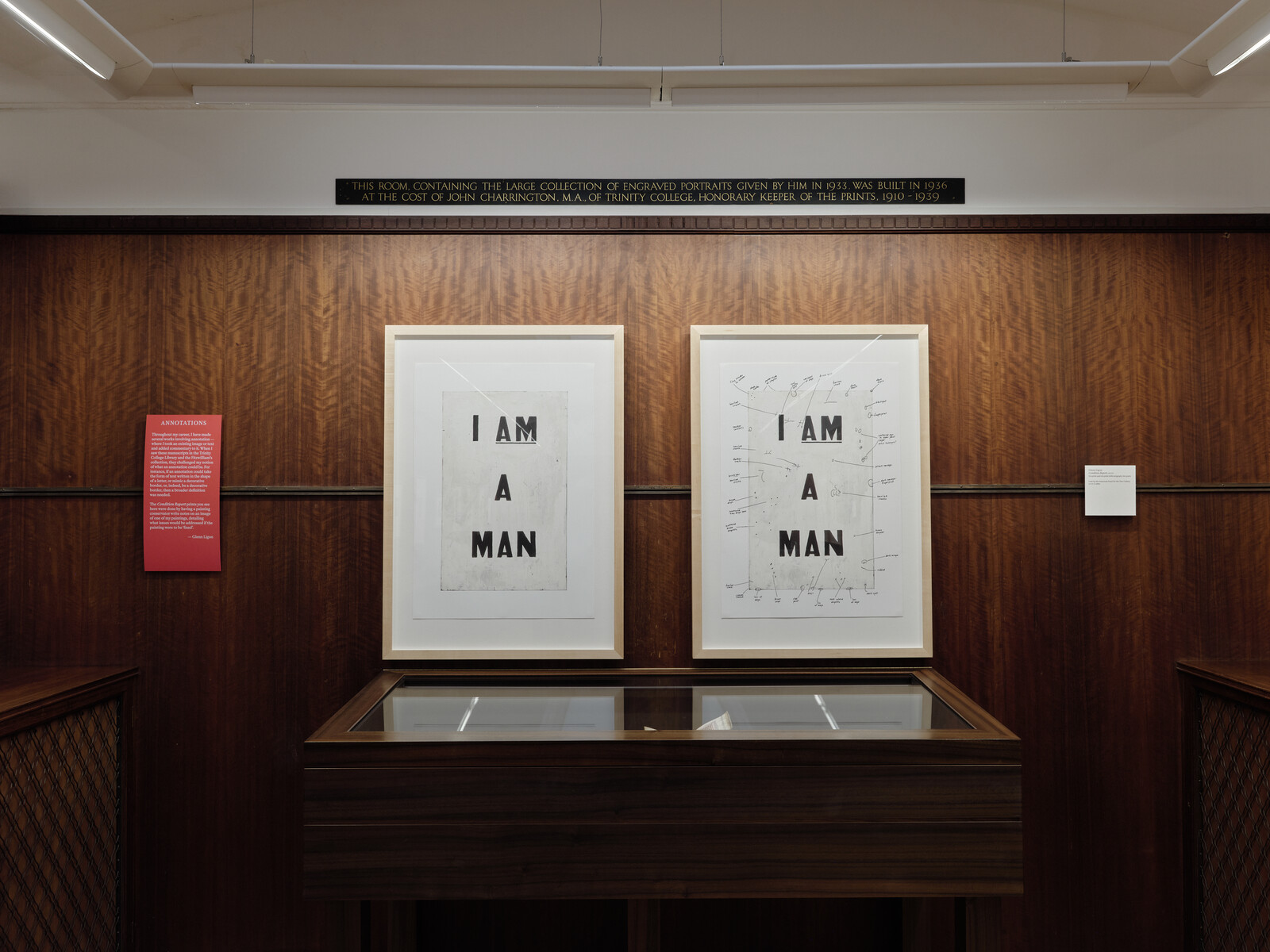 Glenn Ligon’s takeover of the Fitzwilliam Museum is so “all over the place” that I had to come back for a second visit to see things I’d missed the first time around. It is relevant to his nuanced but pervasive intervention that the museum was founded in 1816 when Viscount Richard Fitzwilliam left his collection of art and cultural artifacts to the University of Cambridge with a bequest to construct a museum of art and antiquities. This leaves it with twinned affiliation: both to an esteemed educational institution and to a landowner whose fortune derived in part—as recent research by the museum has unearthed—from his grandfather’s investment in the transatlantic slave trade.