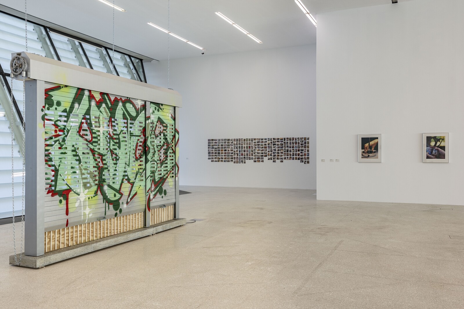 There is a refreshing aesthetic restraint throughout the exhibition, given the bombast one might typically expect in an exhibition about graffiti. Less obvious inclusions of works by Josephine Pryde, Brad Kronz, Yuji Agematsu, R.I.P. Germain, and Klara Lidén approach themes of interclass and racial contact with further politicized nuance, as well as providing some brief but necessary glimpses beyond the US’s connection to graffiti. This curatorial agenda to work against expectations was evident in the screening of Chantal Akerman’s News from Home (1976), which prefaced the opening of the exhibition and in tone effectively served as its coda.