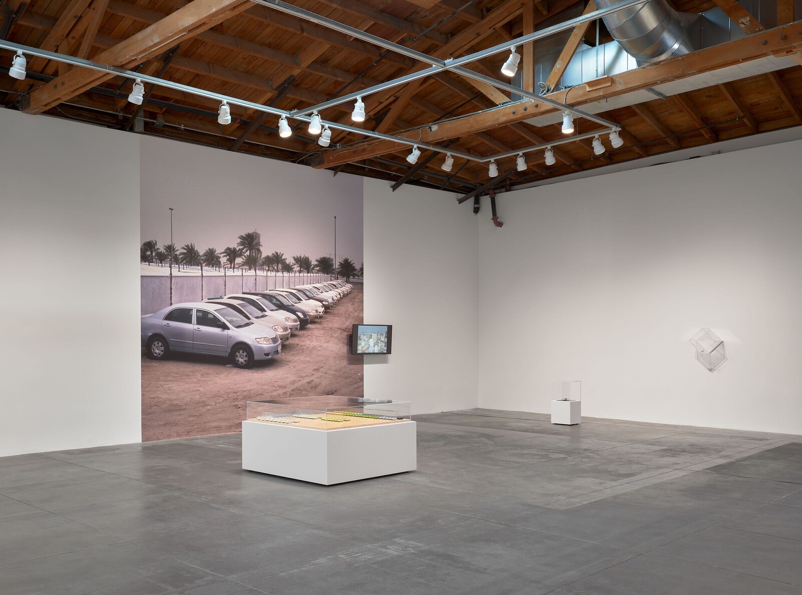 Gustav Metzger hated cars. Not only for the pollution and noise, but because of their association with the hermetically sealed “gas vans” that Nazis used as mobile extermination chambers, diverting exhaust fumes into the vehicles’ interiors. Conceived but not realized for the United Nation’s first world conference on the environment in 1972, Metzger’s installation Project Stockholm, June (Phase 1)—finally executed for the Sharjah Biennial in 2007—included 120 cars, parked around a clear rectangular structure, their motors running constantly and filling the space with gas. The resonances with the United Arab Emirates (one of the world’s largest oil economies), and Los Angeles itself, site of this exhibition, are clear.