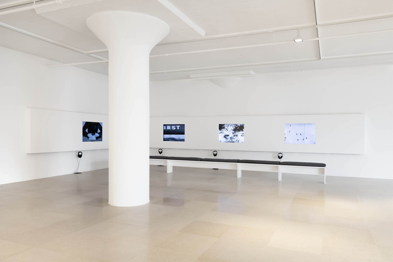 The current exhibition is the third iteration of a 2022 show curated by the late filmmaker’s partner and collaborator Antje Ehmann. The previous two versions, installed at Forum Stadtpark in Graz, Austria, and Galerie Barbara Weiss in Berlin, had a different title, itself somewhat vague: “Against War.” In 2024, however, after ten months of Israel’s genocidal assault on Gaza, the word “war” takes on a new specificity, and a stance against war is, for some, suddenly controversial.