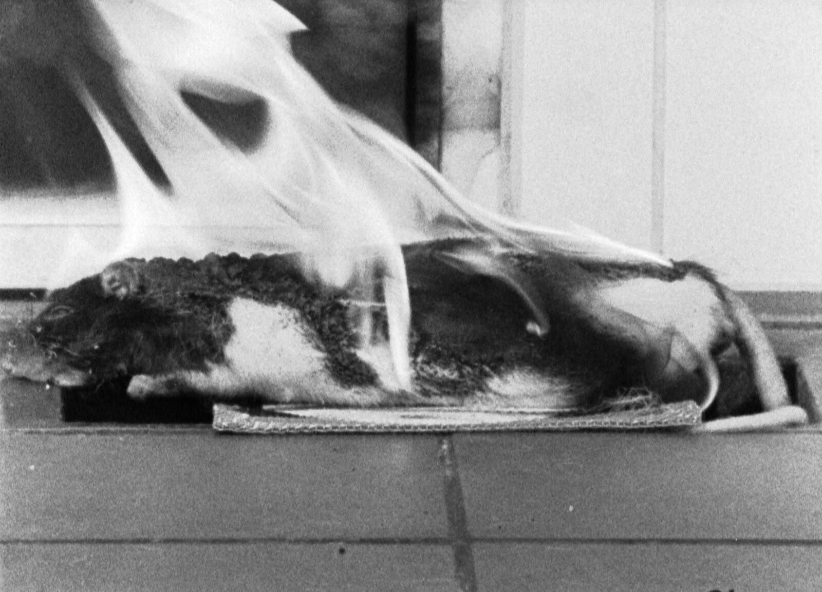 Here, however, the specificity of Farocki’s title is, along with its definite article, lost. This lends it a more nebulous quality. Perhaps the “inextinguishable fire” in question refers not to a chemical weapon, the slightest drop of which—the film’s voiceover narration tells us—burns for half an hour at a temperature of 3,000 degrees Celsius. In the context of a show that marks a decade since the filmmaker’s death, the title almost sounds like a tone-deaf tribute to Farocki’s burning legacy. It loses its precision as a catch-all for a group of works that branches two different phases of the filmmaker’s career (the 1960s and the 2000s) and address wildly divergent topics: Maoist theory, political journalism, Vietnam, weapons technology, colonialism, the Holocaust, computer graphics, and Christian symbolism.