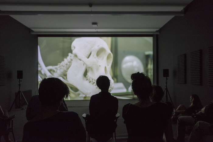 A more lighthearted note is struck by Vladimir Leben’s A Dog’s Life (2013), produced in collaboration with embroidery studio Ercigoj Art: a triptych of embroidered paintings portraying the stray dogs that ride Moscow’s subway every day in search of food. Siniša Labrović parodies human-animal relationships to the point of absurdity in Flock.org (2005), a reality show featuring sheep. By voting for their favorites, spectators assumed responsibility for deciding between life and death: the eliminated sheep would be butchered unless saved by a spectator willing to live with it in their home for 24 hours. The winning sheep got a contract ensuring it a lifetime of care, while the spectators got plenty of opportunities to save lives. In his video Immortality and Resurrection for All! (2017), Anton Vidokle (the editor of e-flux journal), explores the influence of the utopian tenets of Cosmism—the now largely forgotten Russian philosophy combining Marxism, Eastern and Enlightenment thought, and Orthodox Christianity—on life in the twentieth century and its relevance to the present. The final chapter of a trilogy of videos—comprising This Is Cosmos (2014) and The Communist Revolution Was Caused By The Sun (2015)—it meditates on the museum as the site of resurrection of all life. One cannot help but wonder if animals, like humans, want life after death.