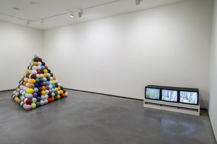 Hierarchies are also blurred thanks to the curator’s dry, lucid humor: one show-stealing work is Alberto Peral’s Untitled (2003), a pyramid made from brightly colored spheres which creates an unexpected resonance with the soft yellows and rose-pinks emitted by Dan Flavin’s Untitled (1996) in the adjoining room. By walking through these rooms visitors agree to play the game, and accept the invitation to create for themselves a kind of counter-canon in which totems of modernity like Alexander Calder, conceptual artists such as Louise Nevelson or Dominique González-Foerster, or relatively forgotten figures such as the Spanish painter Bonifacio, briefly popular in the 1970s and 80s, succeed each other in a new order.