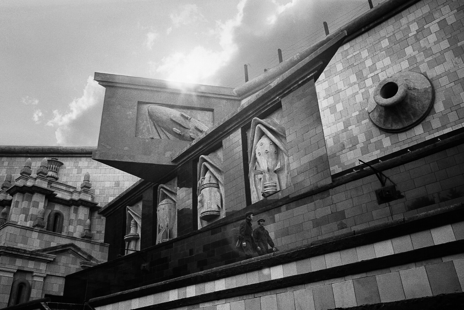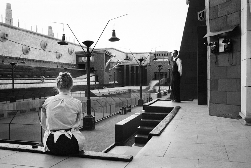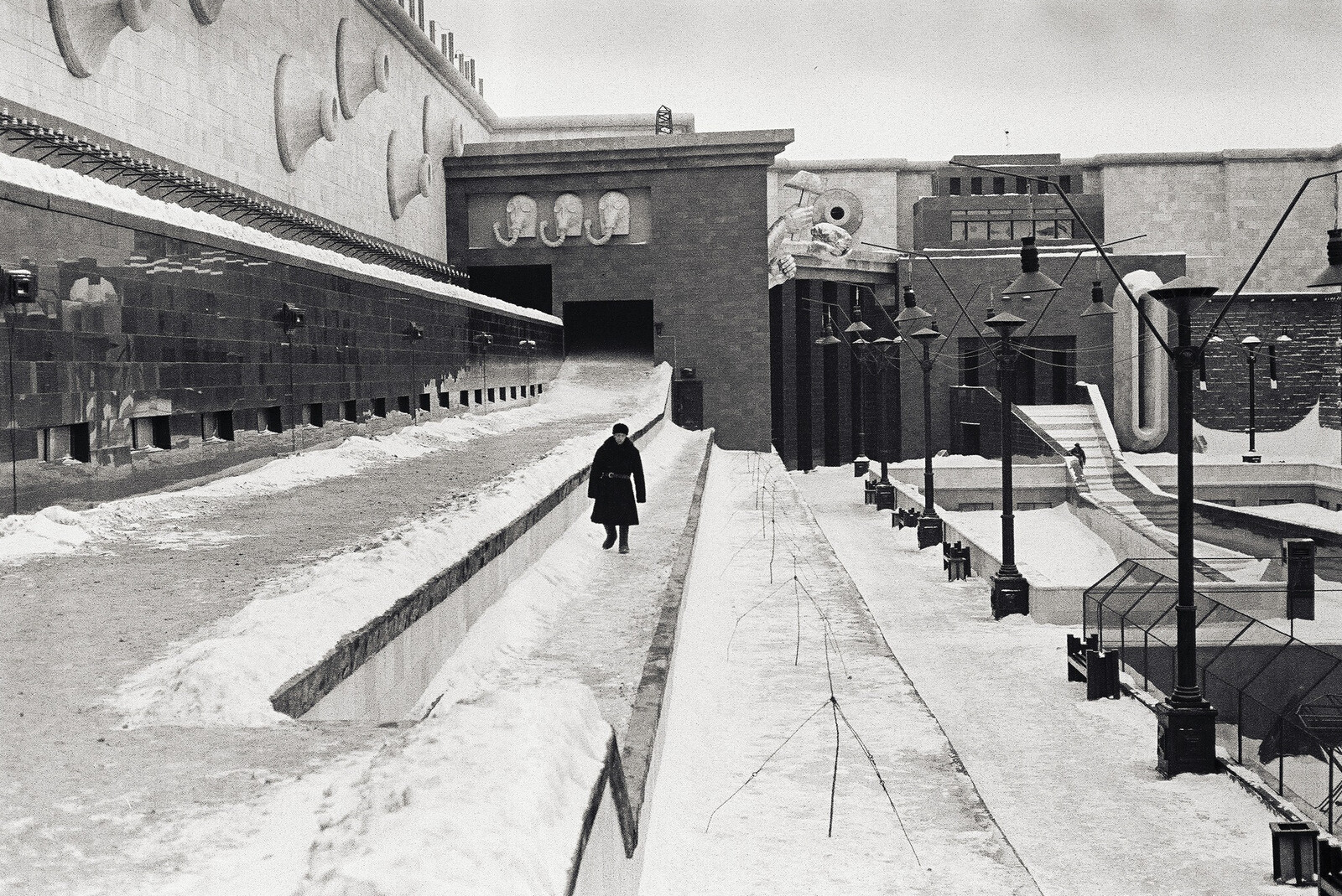 In 2009, the film director Ilya Khrzhanovsky resolved to expand DAU—a biopic of Soviet physicist Lev Landau, which he had been working on since the release of his feature film 4 (2004)—into a vast multimedia project. With the support of businessman Sergei Adon’ev’s Phenomen Trust, alongside a number of European film production companies, Khrzhanovsky constructed an entire campus in Kharkiv, Ukraine, modeled on a Soviet-era scientific research institute. He recruited dozens of participants to live on-site, for periods upward of two years, immersing themselves in the life of the institute and the material culture of the Soviet Union between the 1940s and ’60s. Blurring the boundaries separating fiction from everyday life, these performers lived their roles before a camera, resulting in over 700 hours of footage, which has now been edited into 13 feature-length films running, in total, more than 30 hours (the films are numbered, without individual titles, and dated 2019). Available evidence suggests that most dialogue and at least some of the action was improvised, thus also blurring the boundaries separating film from other visual and performance media (the closest analogue that springs to mind is Matthew Barney’s “Cremaster Cycle,” 1994–2002). The director’s inconsistent and self-aggrandizing PR has built anticipation, while also sowing doubt about the project’s shape and wisdom. DAU’s multimedia “multiverse” was supposed to open in Berlin in the fall of 2018, but it did not, thus adding to its legend as an impossible spectacle in the grand Russian tradition of Alexander Scriabin’s Mysterium (left incomplete—possibly not even begun—at the time of his death in 1915) or Ilya Kabakov’s total installations.