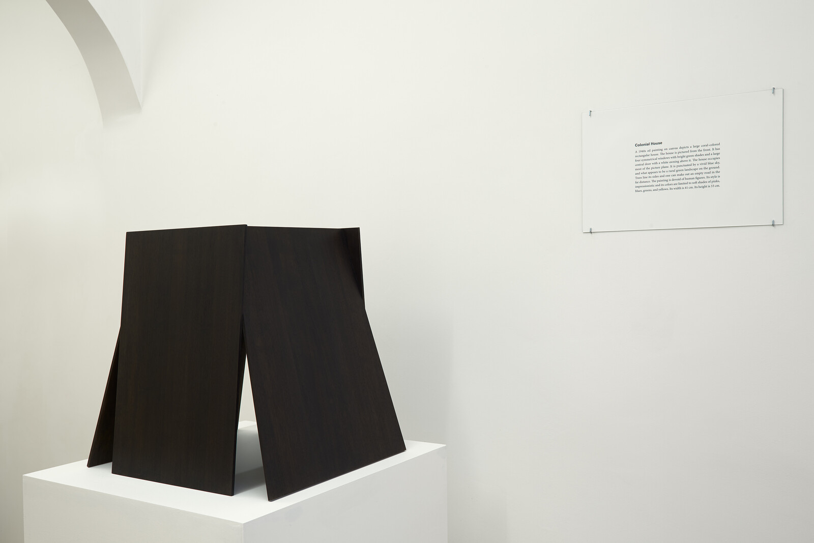 What is the viewer’s role? The words used above—remake, revisit, recreate—are insufficient to describe the reconsidered relationship between language and object that Issa considers and complicates in her work. In “Lexicon,” the tone in Issa’s texts is flat, almost medical (“Forms are abstract and shapes are geometric,” in Mourning (study for 2013) [2013]; “the drawing has sharp lines and contrasting colors,” in Surrealism III (study for 2014) [2014]). But the titles of these works indicate their status as studies, which could be seen as a cop-out, as a relationship whose nature the artist is not ready to state clearly. That’s the work of the viewer: to link what is left open by the juxtaposition of texts and objects. The objects in Issa’s exhibition—as beautiful and attractive as they are—function as ideas, as an extension of this constantly reassessed relationship between language and material.