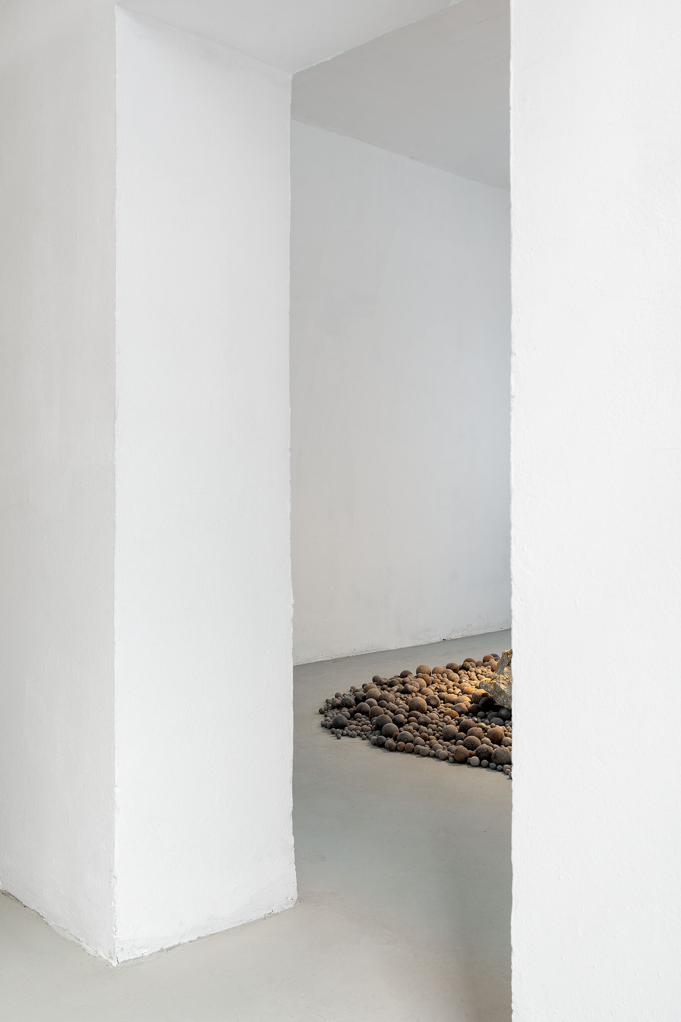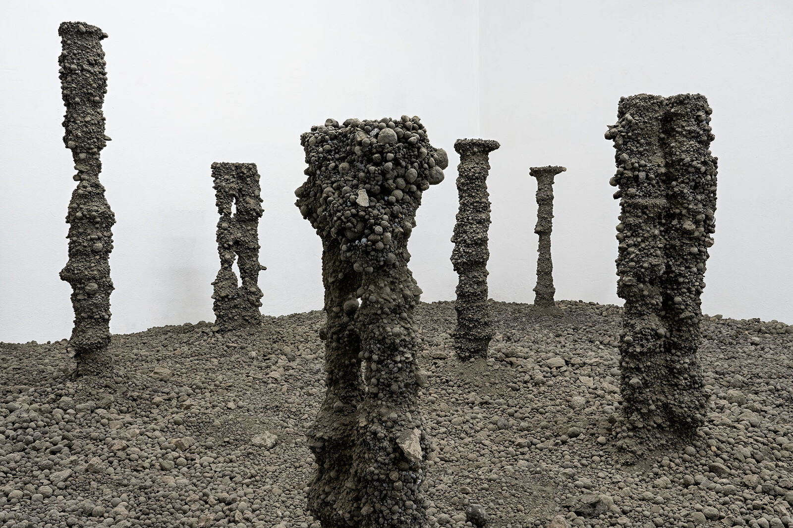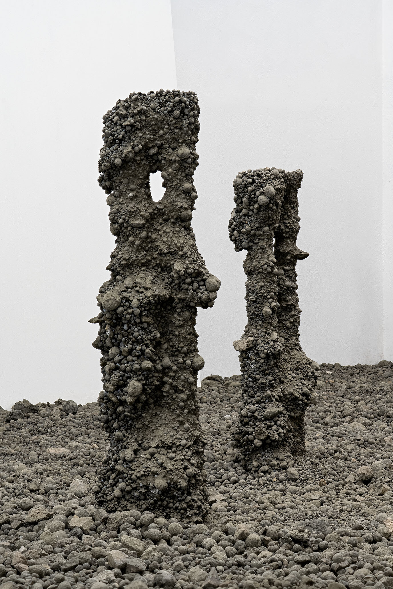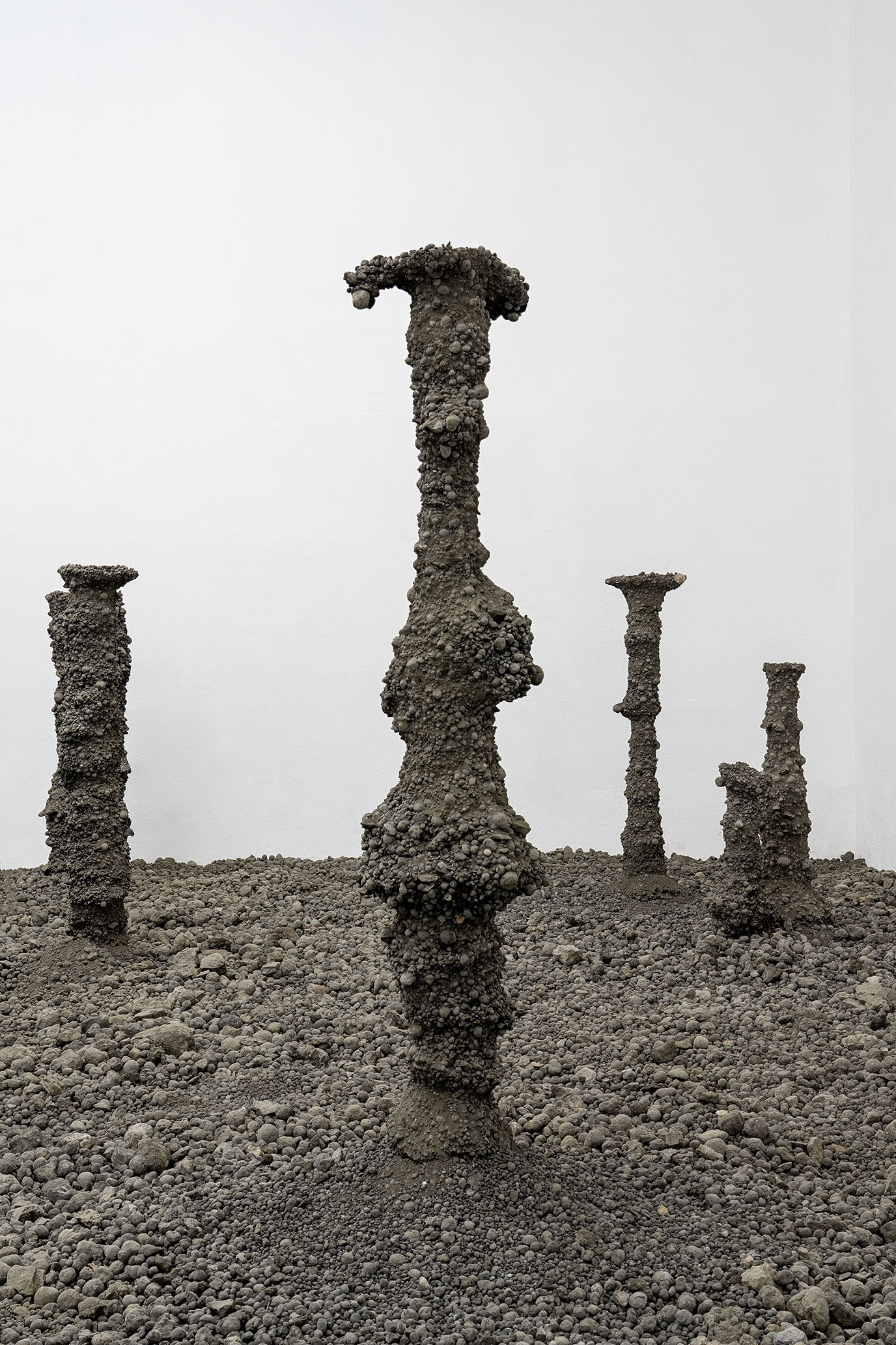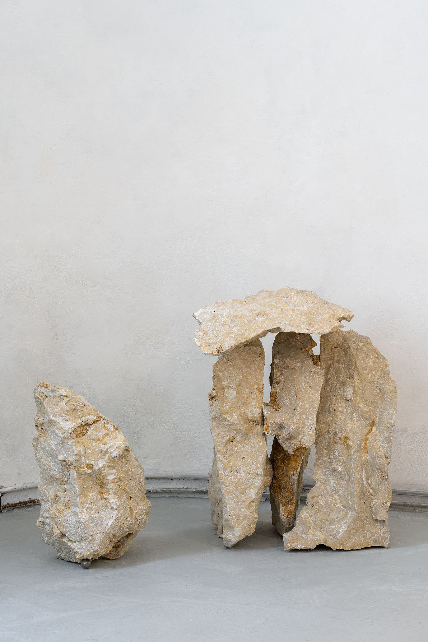 Through sculptural interventions and material displacements, the works navigate the entanglement of human and geological forces. Some forms appear as if excavated from an unknown past, while others anticipate a fossil record yet to come, a moment in which synthetic and natural sediments become indistinguishable. If the built world functions as an artificial stratigraphy, what does it mean to manufacture stone? And if concrete, once set, is destined to fracture and erode, how does this cycle of making and unmaking define the geologies we now construct?