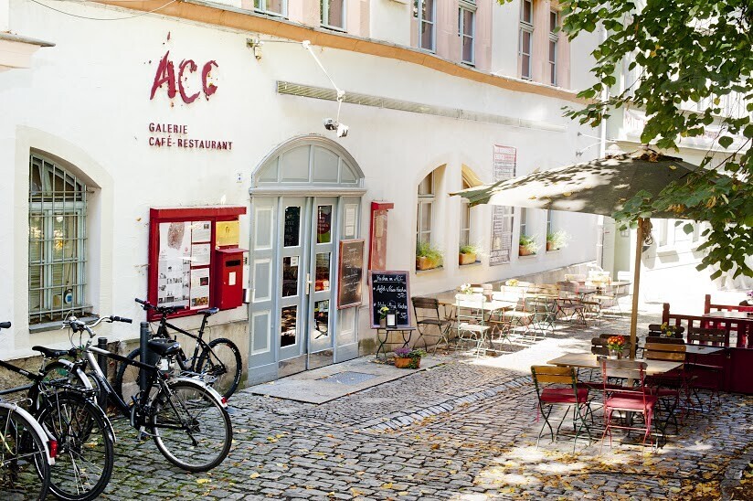 The ACC Café-Restaurant has been around since 1992. It is located in the city center of Weimar, across from the castle in a four-hundred-year-old Renaissance town house. It is part of the ACC cultural center and seats one hundred.