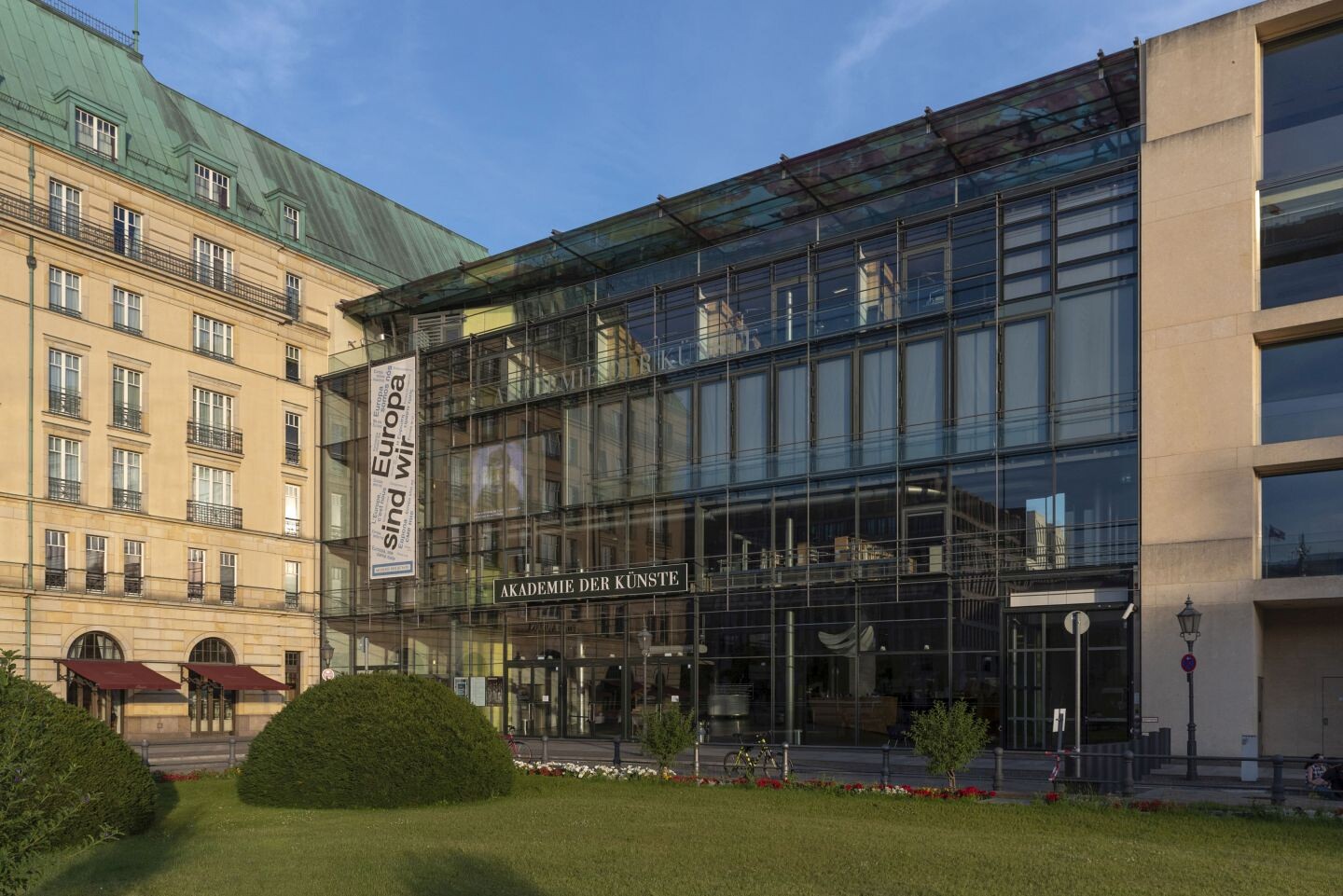 The event programme of the Academy serves to present contemporary artistic positions to the public and is dedicated to safeguarding cultural heritage. In its two permanent locations in the heart of Berlin—Pariser Platz in the Berlin-Mitte district and Hanseatenweg in Tiergarten—the Academy shows exhibitions, organises concerts, debates, readings, awards ceremonies, as well as film, theatre, and dance performances.