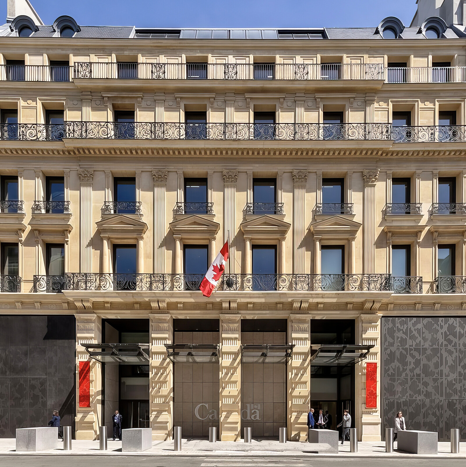 Initially established on the Esplanade des Invalides in the 7th arrondissement of Paris, in the spring of 2018, the centre moved to 130 rue du Faubourg Saint-Honoré in the 8th arrondissement of Paris in a post-Haussmannian building renovated by the Canadian and French architects Julian Smith and Jean-Paul Viguier. Integrated into the Embassy of Canada, it is in this unique setting that the special artistic encounters between Canada and France come to life.
