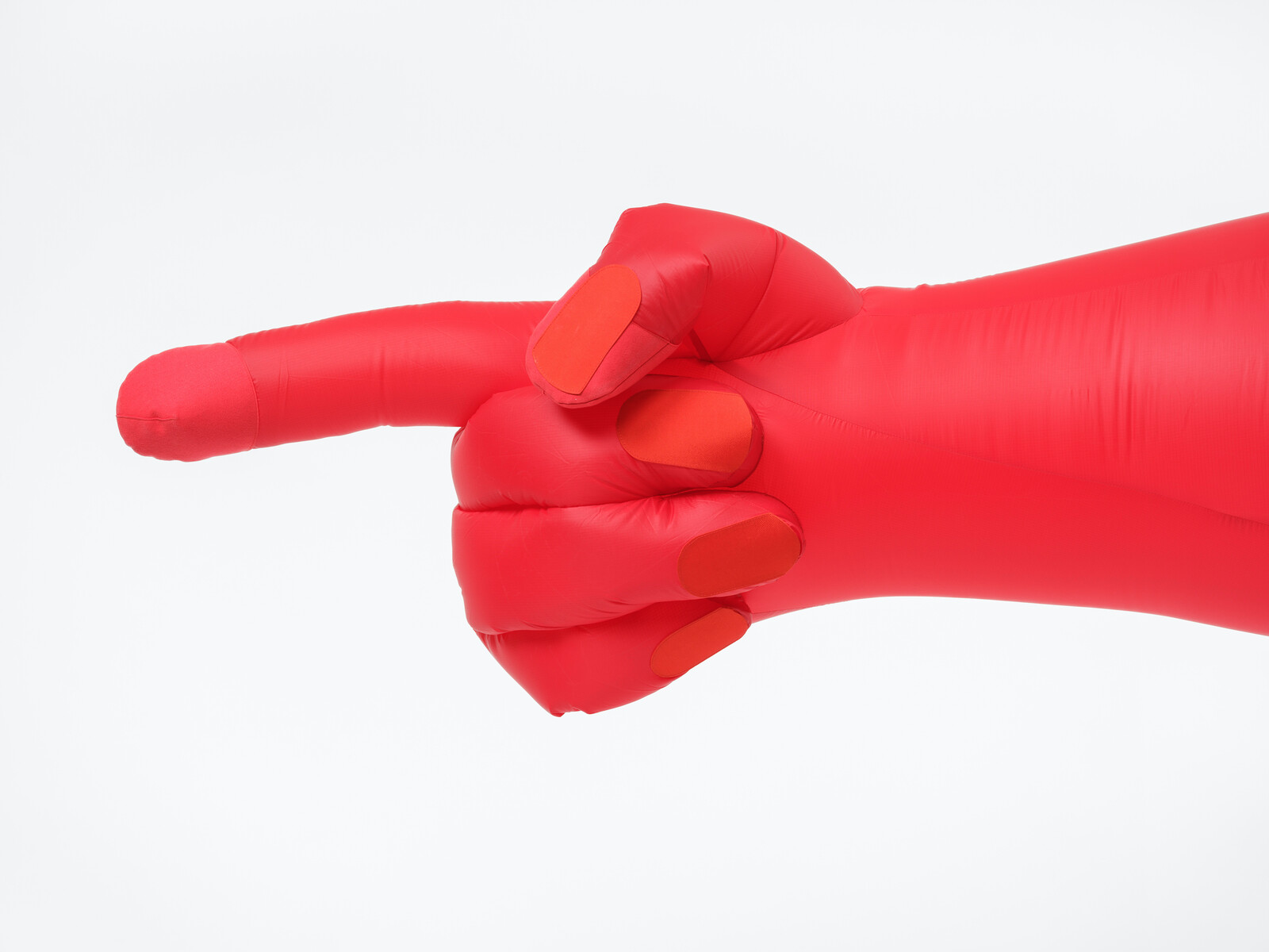 Notable works in the exhibition will include the newly commissioned Look Up My Nose (2025), a large hanging fibreglass sculpture modelled on the noses of Melville and Alexander Graham Bell. Designed to release vibrations that visitors can feel, the piece mocks notions of superiority and critiques Bell’s role in the suppression of sign language. NOT CROSS (2025), a large brick wall which addresses the disconnection between words and body language in spoken and signed languages, will illustrate the frustration of not being understood, whilst the large-scale kinetic installation ATTENTION (2022) features two absurdly oversized inflatable arms that depict the ASL sign for attracting attention. Each arm points to historical and contemporary sites of policymaking to underscore the ongoing fight for recognition and inclusion by the Deaf community.