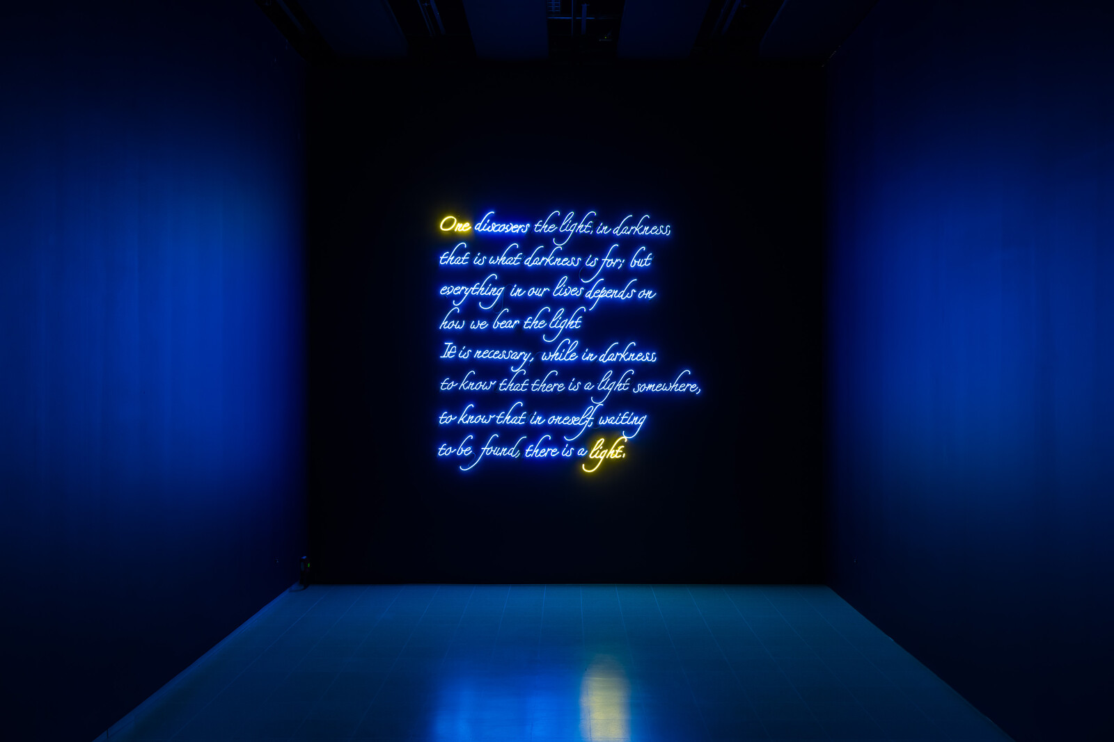 Tavares Strachan explores light and darkness by establishing parallels between writing history and astrophysical phenomena. The light of supernovas, the bright luminescence of exploding stars, stands for the complex interplay of image, language, sculpture, music, universal knowledge, and collective memory which he brings together in the Kunsthalle’s exhibition rooms in breath-taking installations.