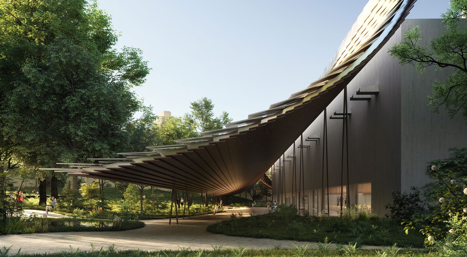 Project of the new CAM building’s exterior, designed by Kengo Kuma & Associates